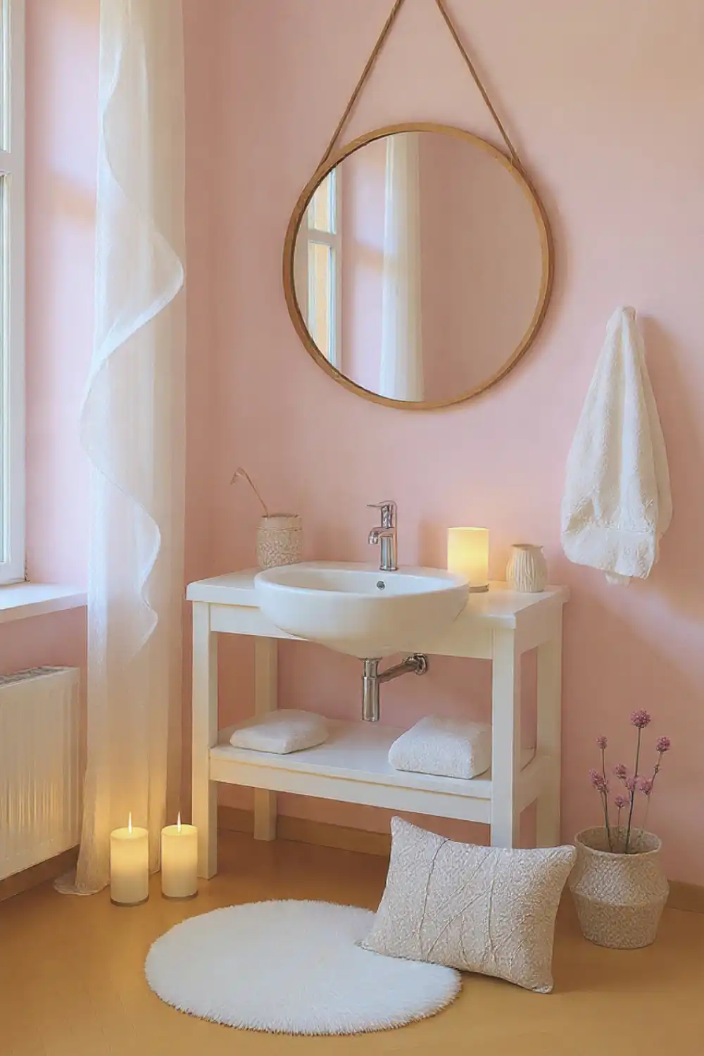 A whimsical apartment bathroom uses soft lighting, pastel towels, round mirrors, and gentle textures. Add a shower curtain with subtle patterns, small sconces, aromatherapy candles, and charming storage baskets. If space allows, bring in a small plant or tiny framed art. Coordinate colors for a cohesive, dreamy look. In 2026, bathroom aesthetics are trending as people seek spa-like tranquility at home. Even renters can transform bathrooms affordably with peel-and-stick tiles, removable hooks, and pastel accessories. Small touches make a big difference in creating a calming, whimsical retreat.