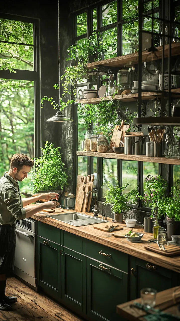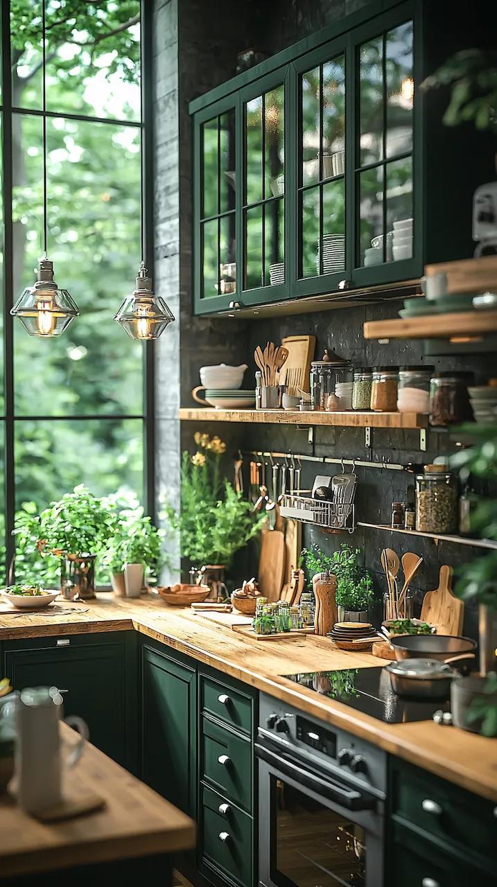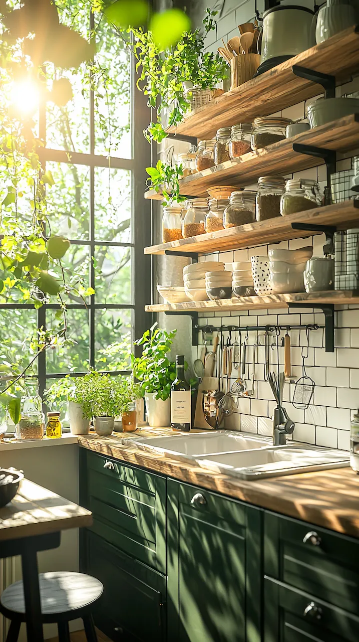 So don’t be afraid to play. Stir in that velvet chair cushion the color of ripe plum. Add a dash of patterned curtain, a swirl of aged wood, a sprig of something wild. Let your kitchen — no matter how small — speak in the language of food and feeling. Curate it like a meal. Cook with it like a canvas. And serve it, always, with love.