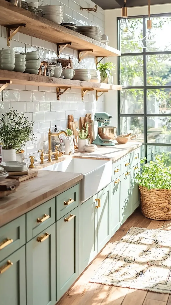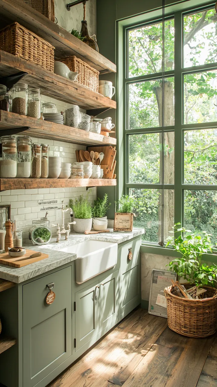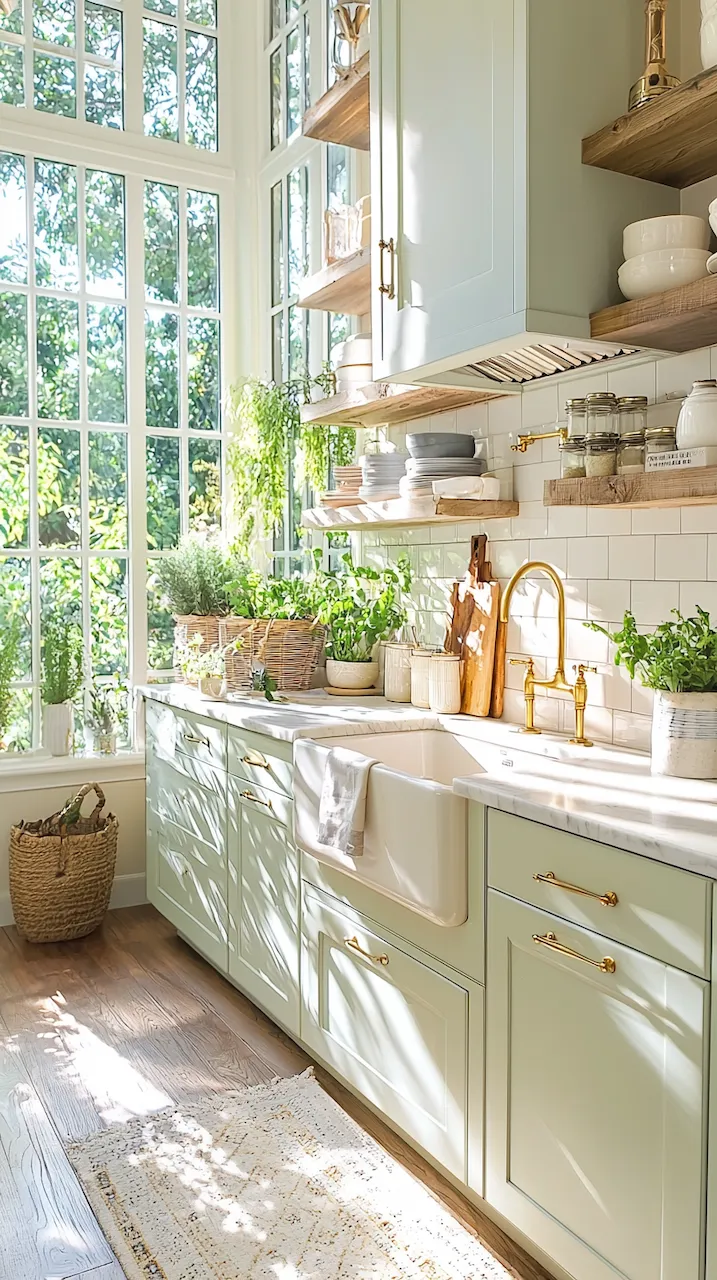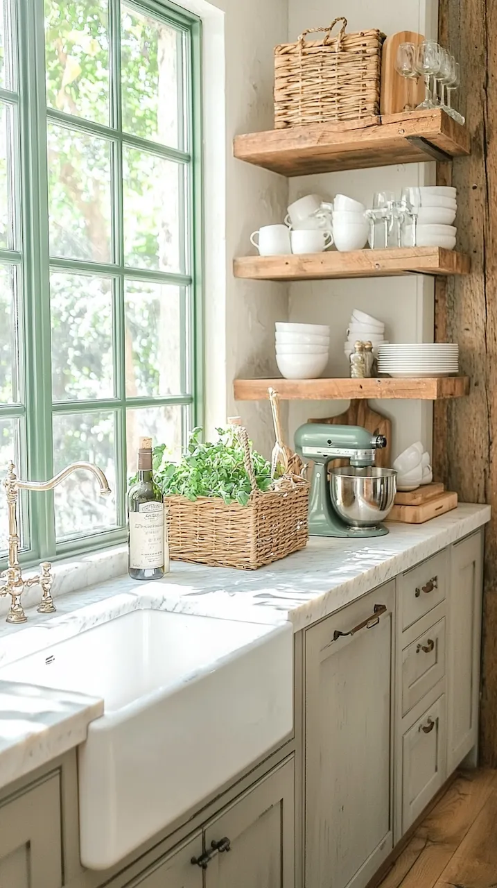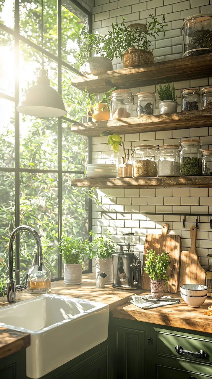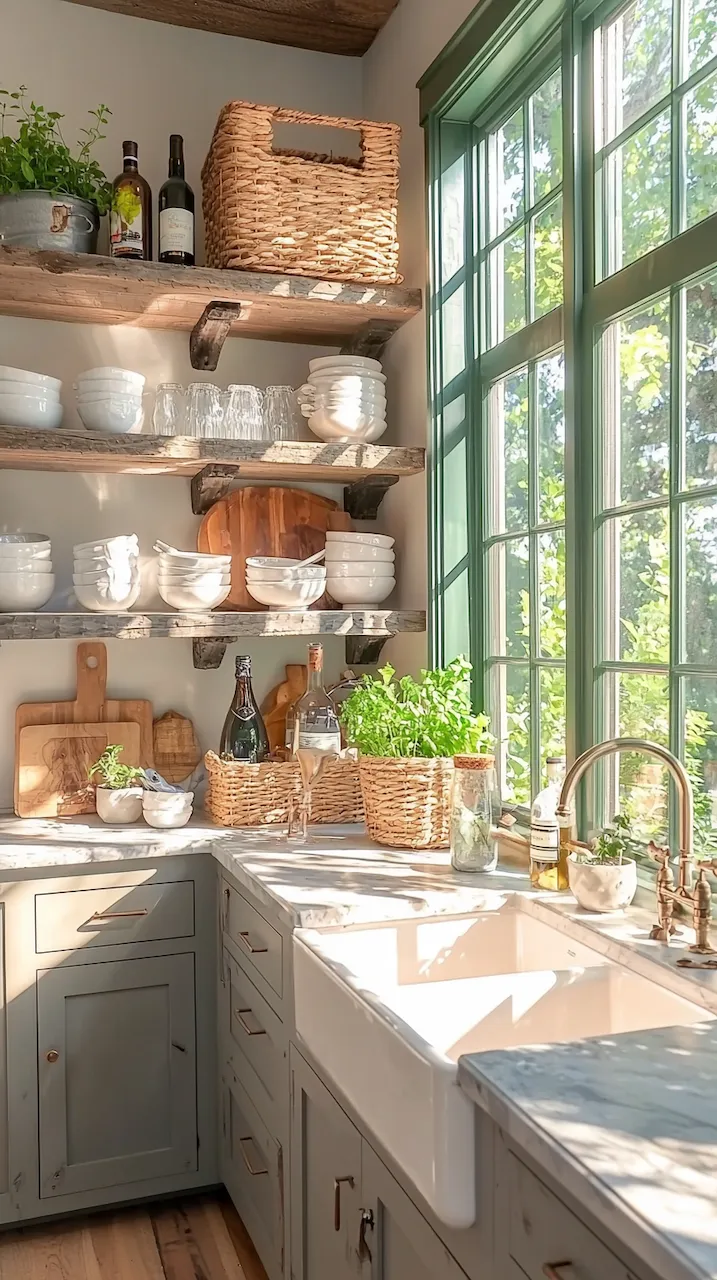 Then comes the flourish — the personal seasoning that makes a dish your own. In the world of cottage kitchens, this means curating charm without clutter. Perhaps it’s the antique copper ladle passed down through generations, now hung with pride on a simple peg rail. Or the collection of vintage spice tins whose faded labels feel like culinary haiku. Statement lighting in aged brass or milk glass can act as your garnish, casting a glow that turns a quiet cup of tea into a ritual. Think of your hardware — drawer pulls, faucets, hooks — as the finishing salt: small, sharp, essential. Let your own style infuse the space. A botanical print framed above the stove. A shelf of cookbooks with cracked spines and stained pages. A hand-painted tile from a market trip, embedded in the backsplash like a secret.