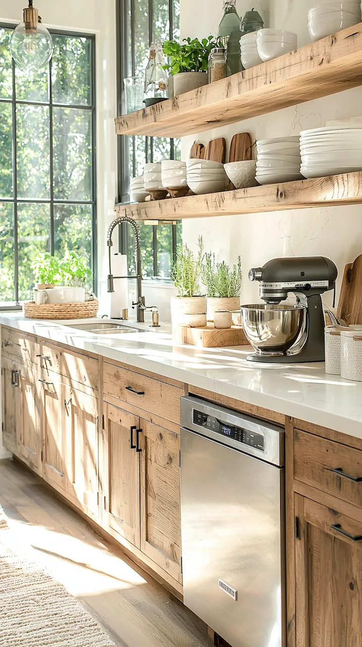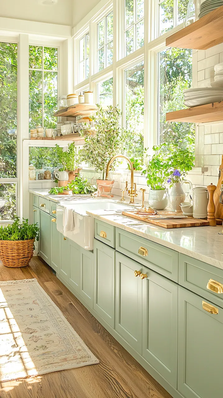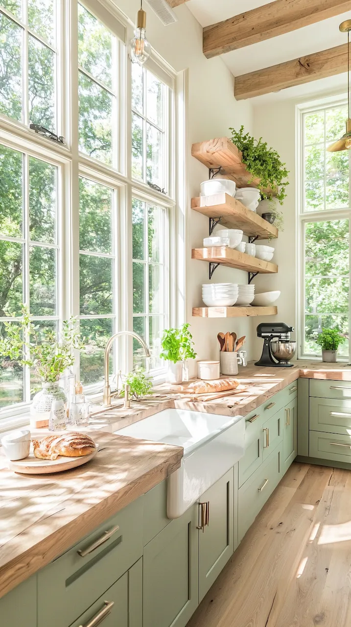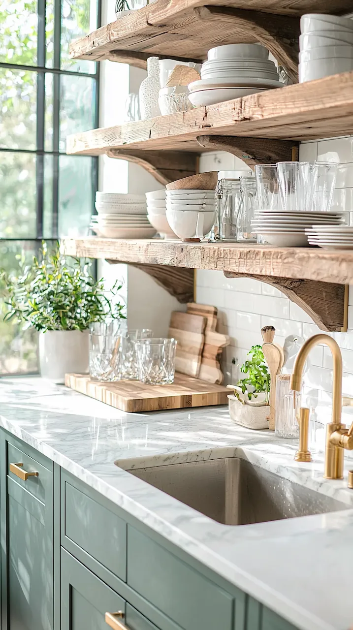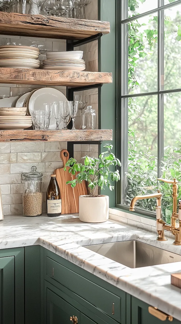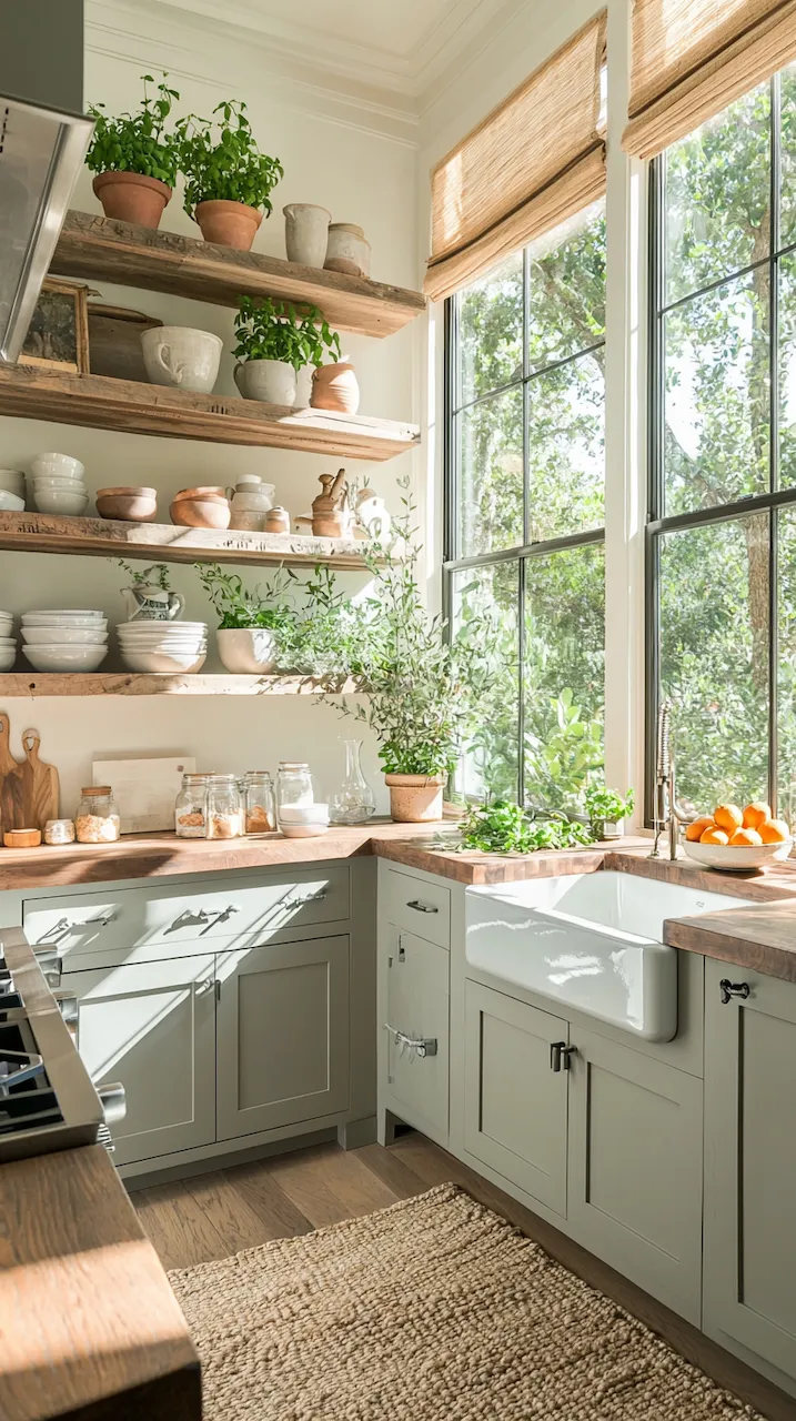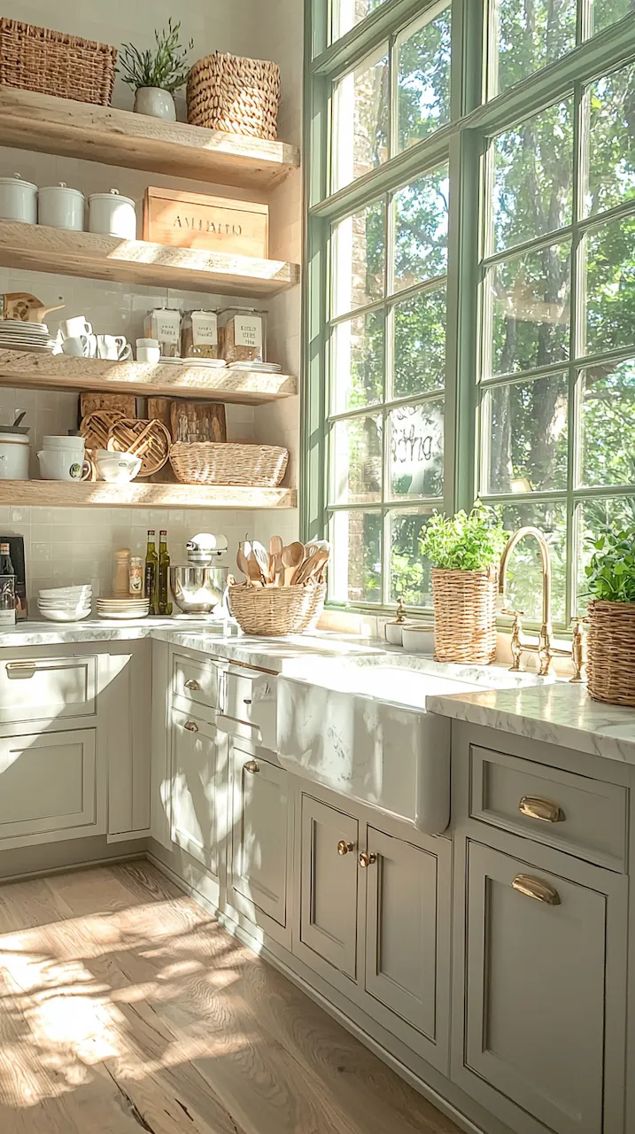 Then comes the flourish — the personal seasoning that makes a dish your own. In the world of cottage kitchens, this means curating charm without clutter. Perhaps it’s the antique copper ladle passed down through generations, now hung with pride on a simple peg rail. Or the collection of vintage spice tins whose faded labels feel like culinary haiku. Statement lighting in aged brass or milk glass can act as your garnish, casting a glow that turns a quiet cup of tea into a ritual. Think of your hardware — drawer pulls, faucets, hooks — as the finishing salt: small, sharp, essential. Let your own style infuse the space. A botanical print framed above the stove. A shelf of cookbooks with cracked spines and stained pages. A hand-painted tile from a market trip, embedded in the backsplash like a secret.