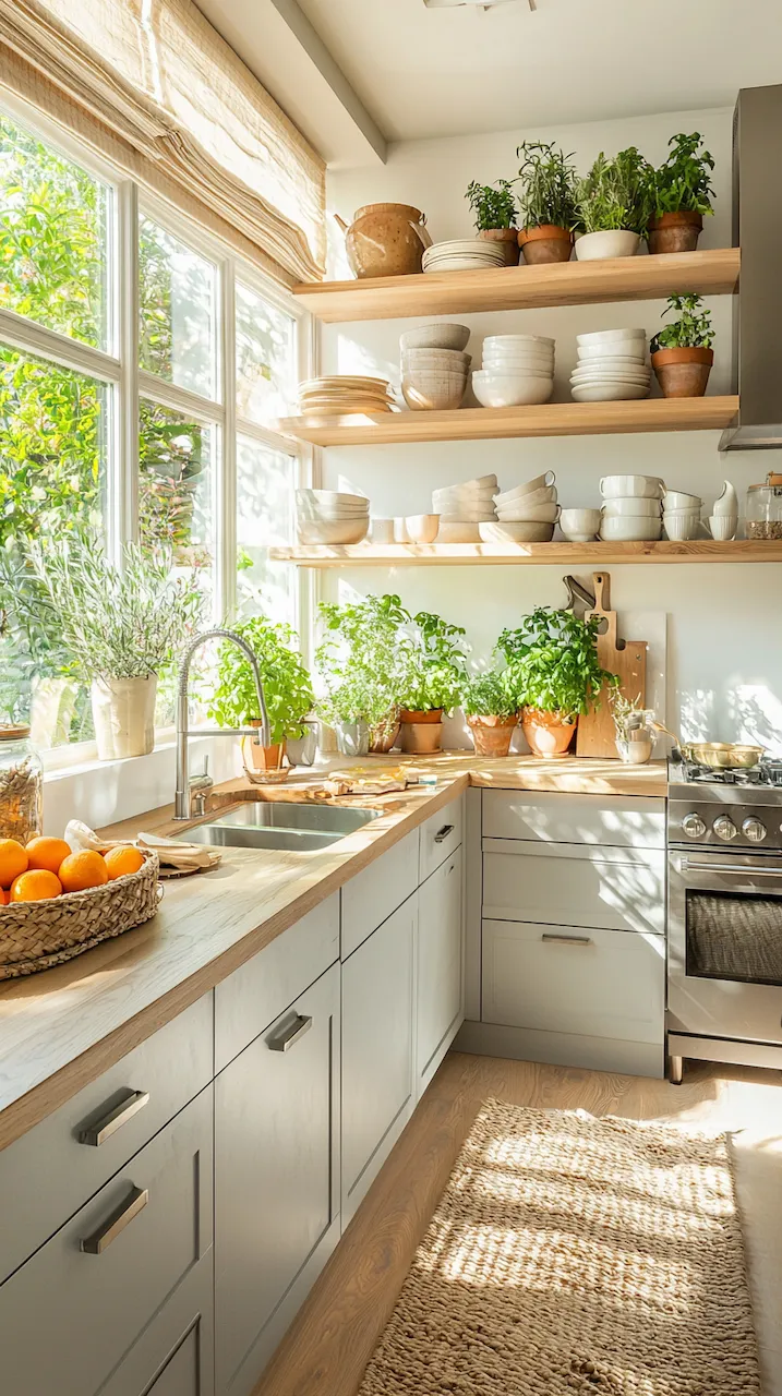 But flavor is never just about color. It’s about mouthfeel, about the resistance of al dente pasta or the crunch of burnt sugar. That’s where texture enters. In a cottage kitchen, texture tells the story of time: beadboard paneling with its old-world charm, like the grain of a well-worn cutting board; hand-glazed tiles that gleam unevenly, catching light the way butter foams on a hot skillet; countertops in butcher block or honed stone, whispering with every touch of your hand or clatter of a mug. Even within the constraints of a small space, there is room for textural layering. A hanging linen curtain flutters like steam off a kettle, while a jute rug underfoot grounds the space with its warm, nubby embrace. Think of every surface and object as you would ingredients in a stew — the contrast matters. Smooth next to rough. Warm next to cool. Patina beside gloss. The alchemy happens in the tension.