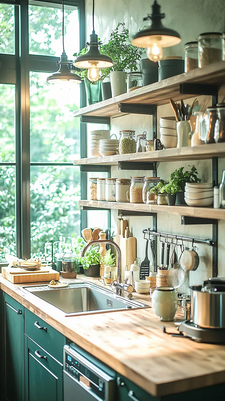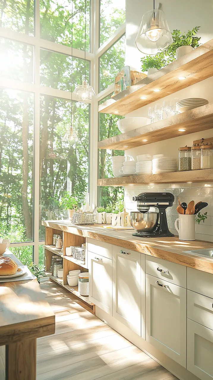 Function, of course, is the final layer. In a small kitchen, it must hum along like a well-rehearsed recipe: intuitive, tight, efficient. Floating shelves instead of upper cabinets can visually lift the space and invite both display and easy access. A rolling cart with marble top becomes your mobile mise en place — prep area, breakfast bar, cocktail station. Layout is your plating. A fold-down table against the wall blooms into a brunch nook with two stools tucked underneath like folded napkins. And above all, light. Natural where possible, diffused and golden. Supplemental where needed — under-cabinet strips, pendant fixtures, even the flicker of candles in the evening to lend a hush, a softness, a feeling of being wrapped in the final moments of a feast.