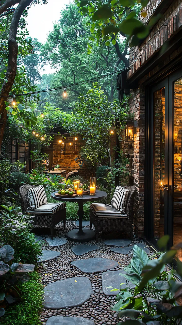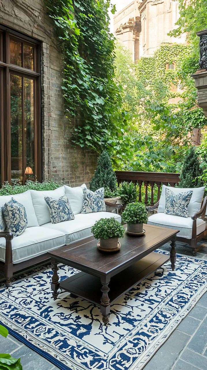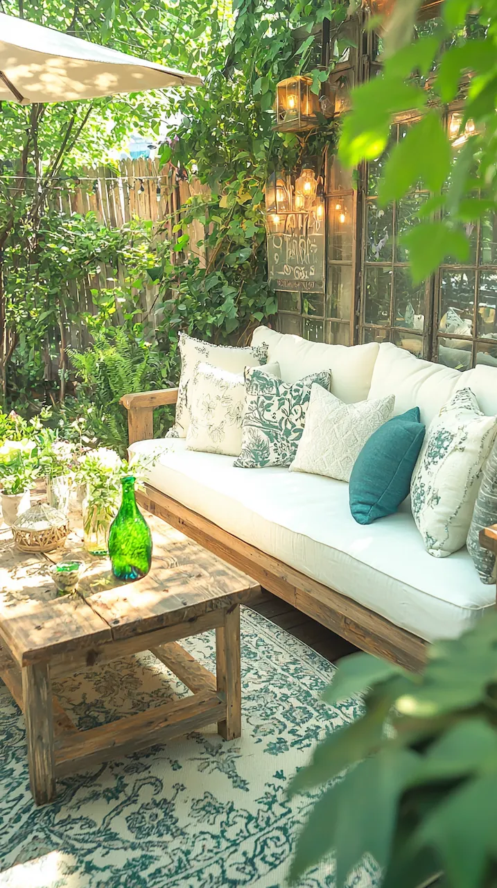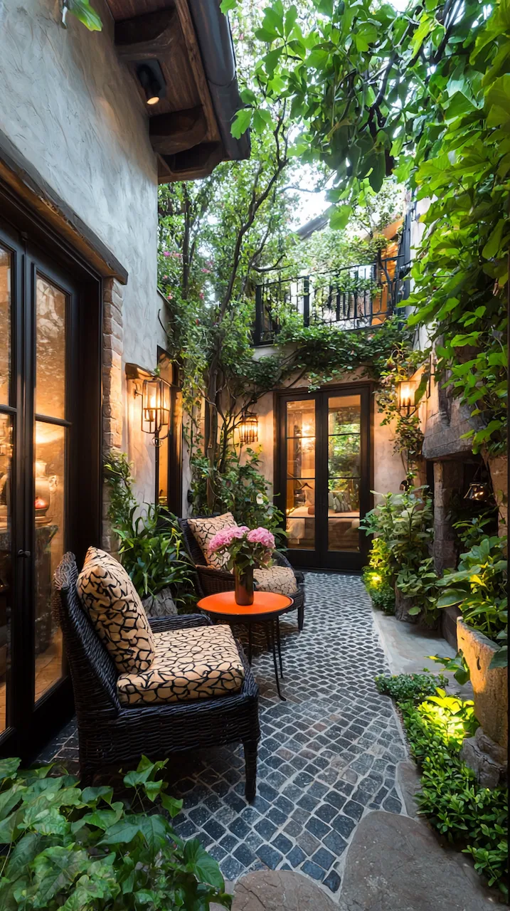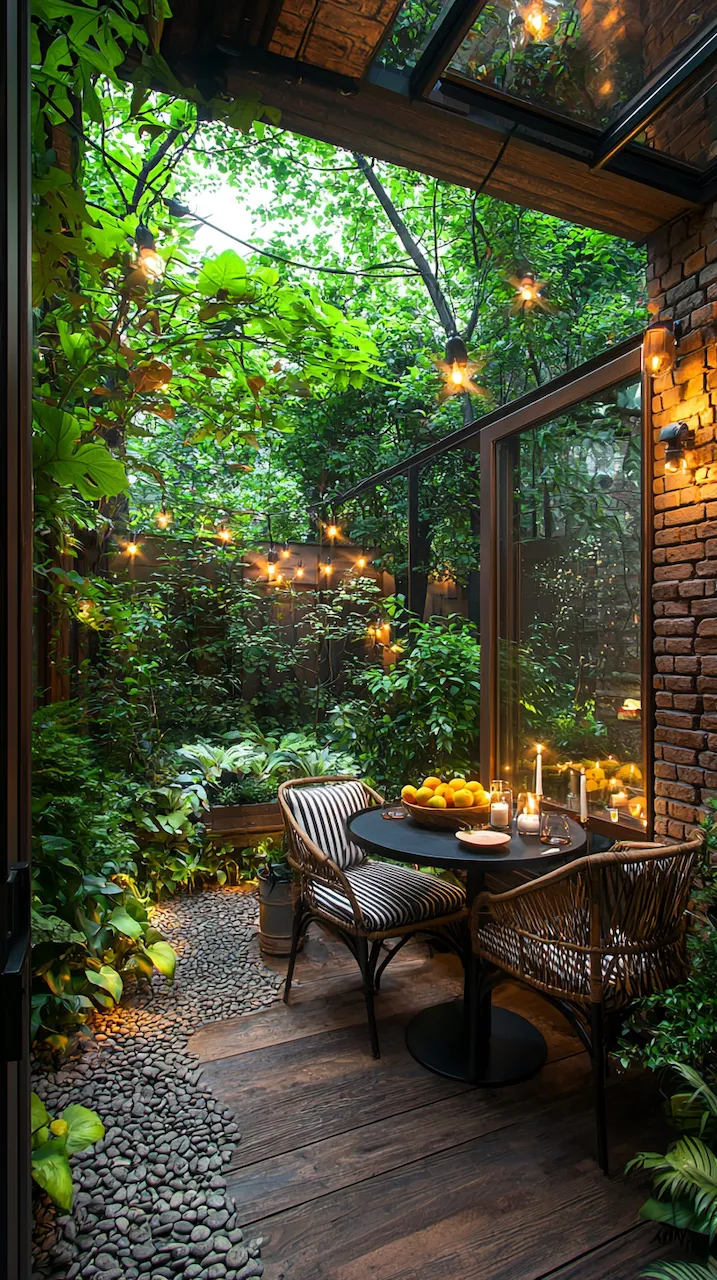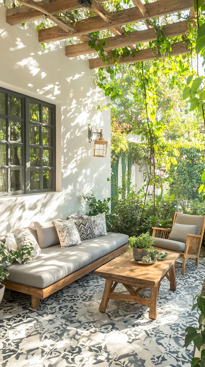 In a small patio, walls often do more than hold things up—they’re your canvas. Consider peel-and-stick tiles in patterns that echo Mediterranean kitchens. These details don’t scream. They simmer.