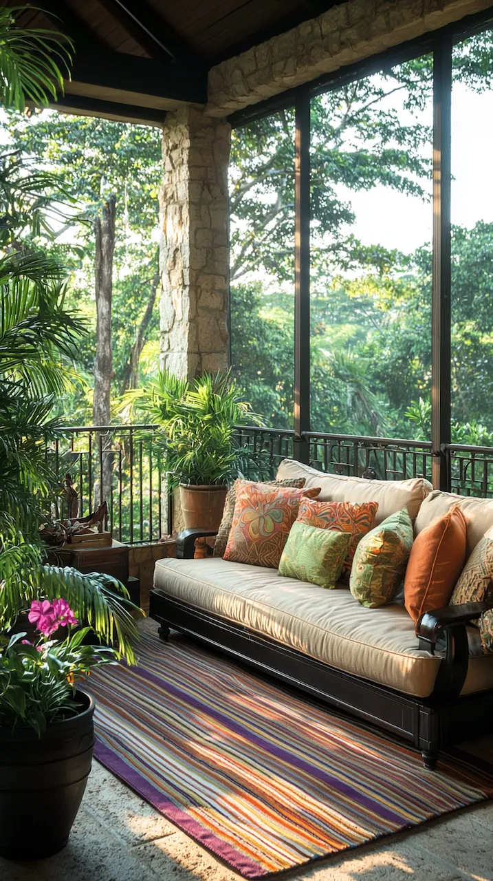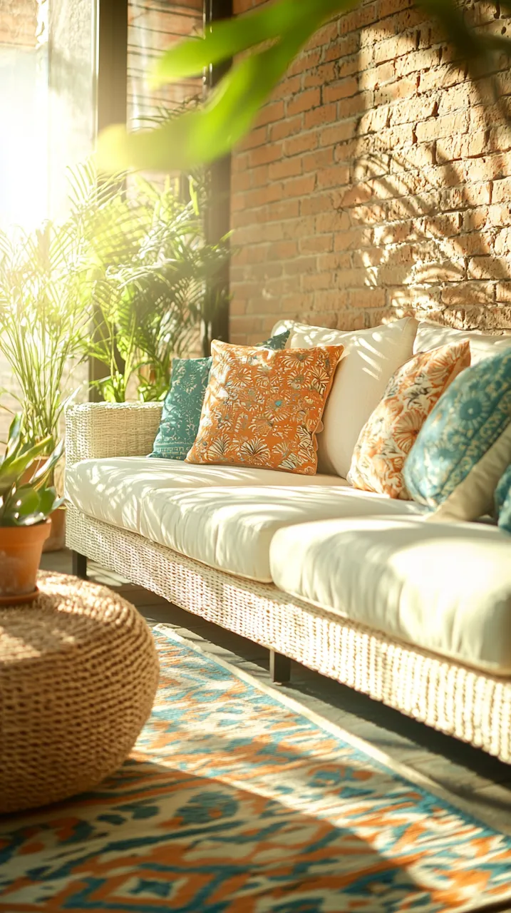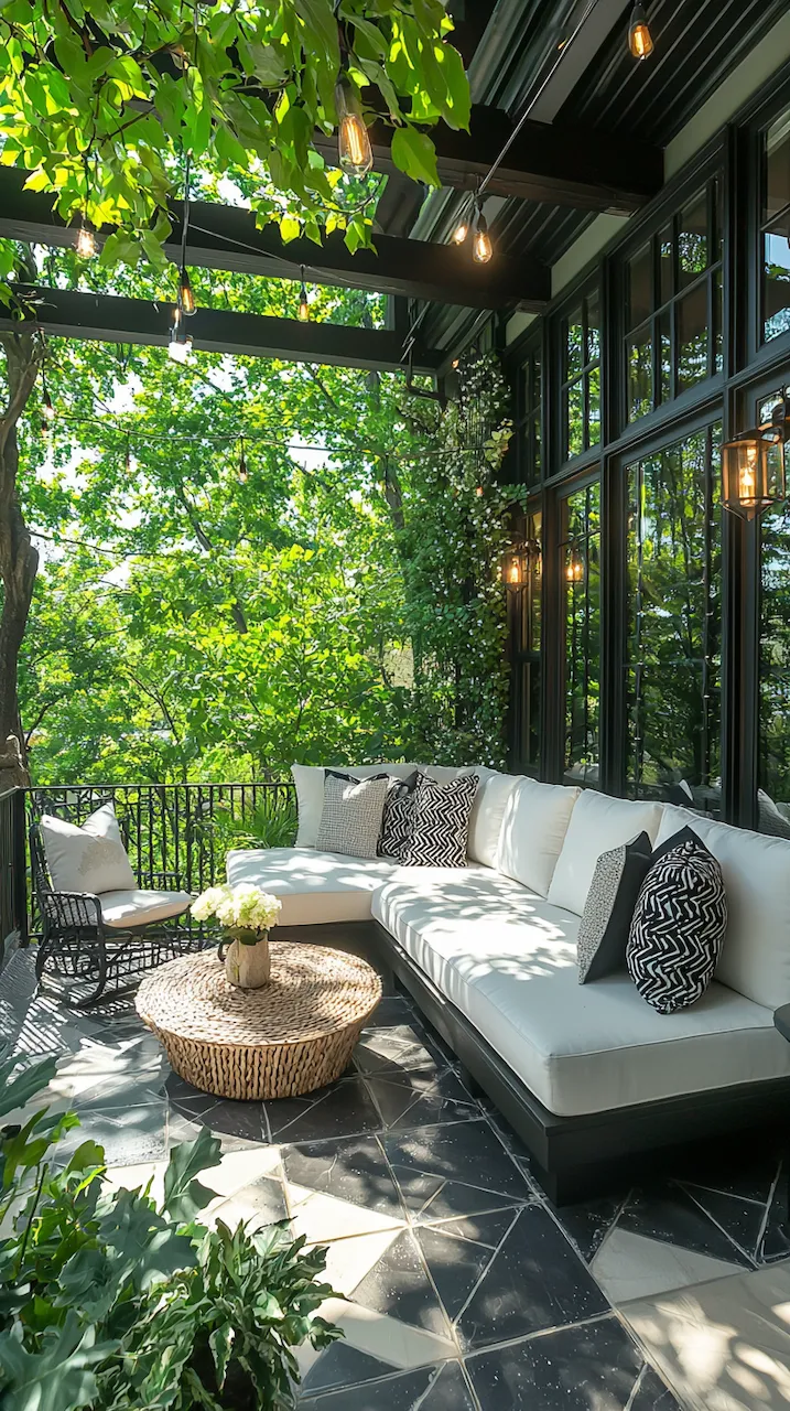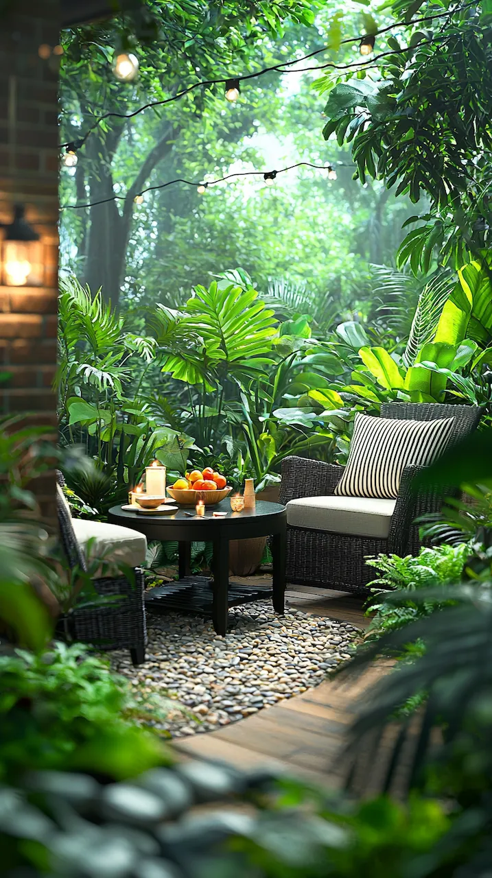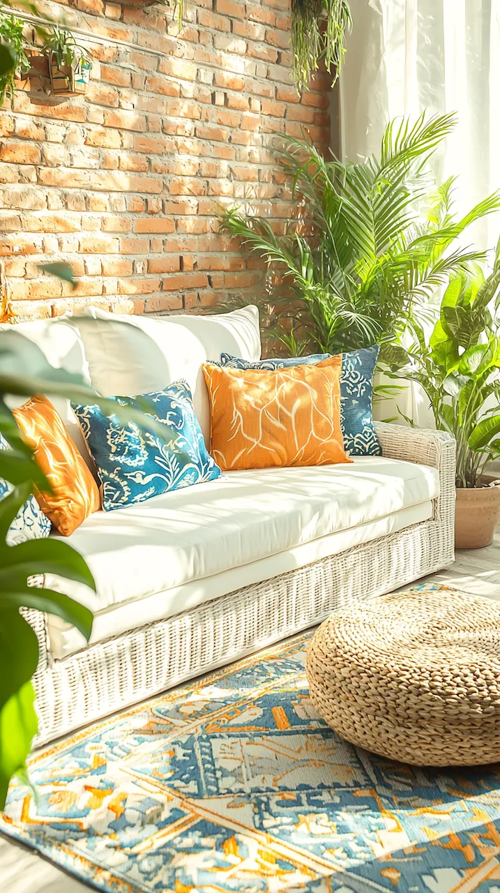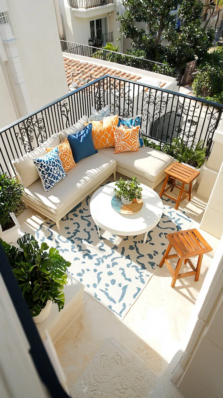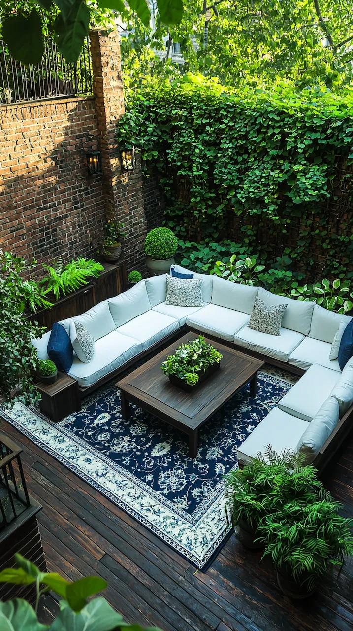 In a small patio, walls often do more than hold things up—they’re your canvas. Consider peel-and-stick tiles in patterns that echo Mediterranean kitchens. These details don’t scream. They simmer.