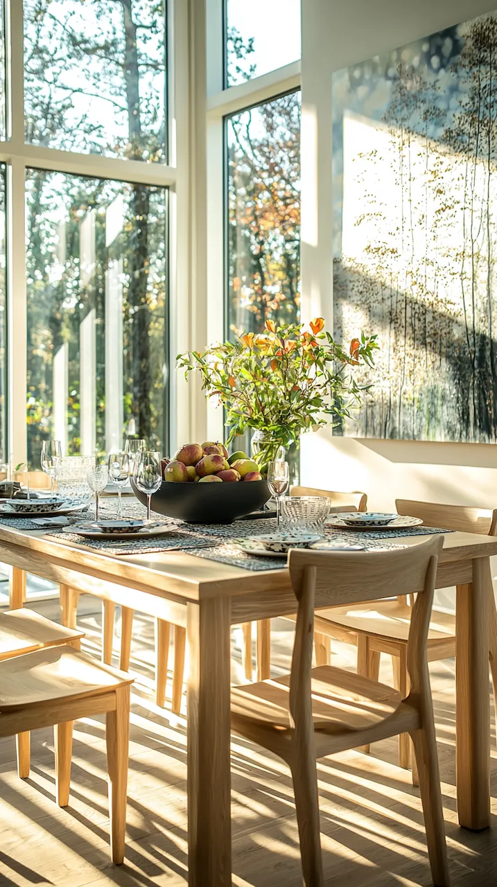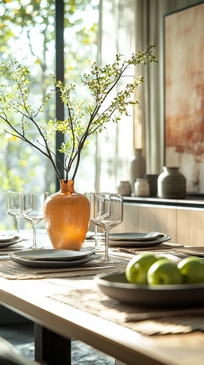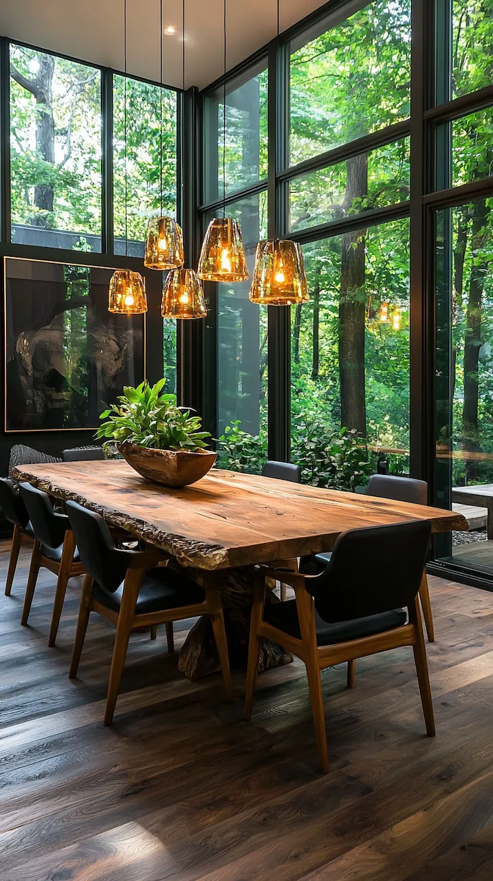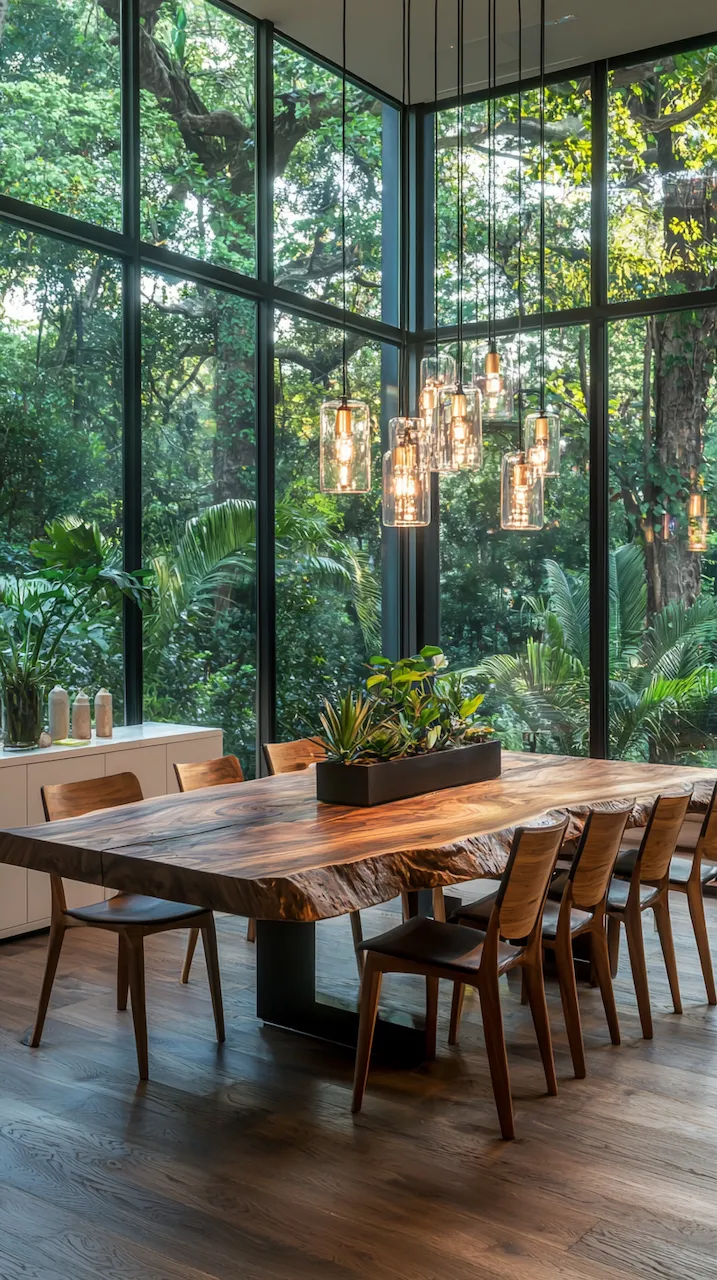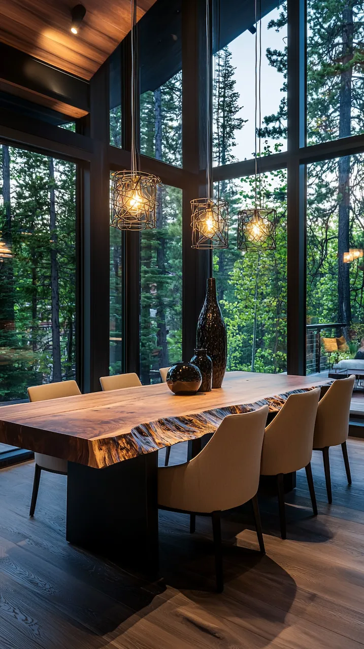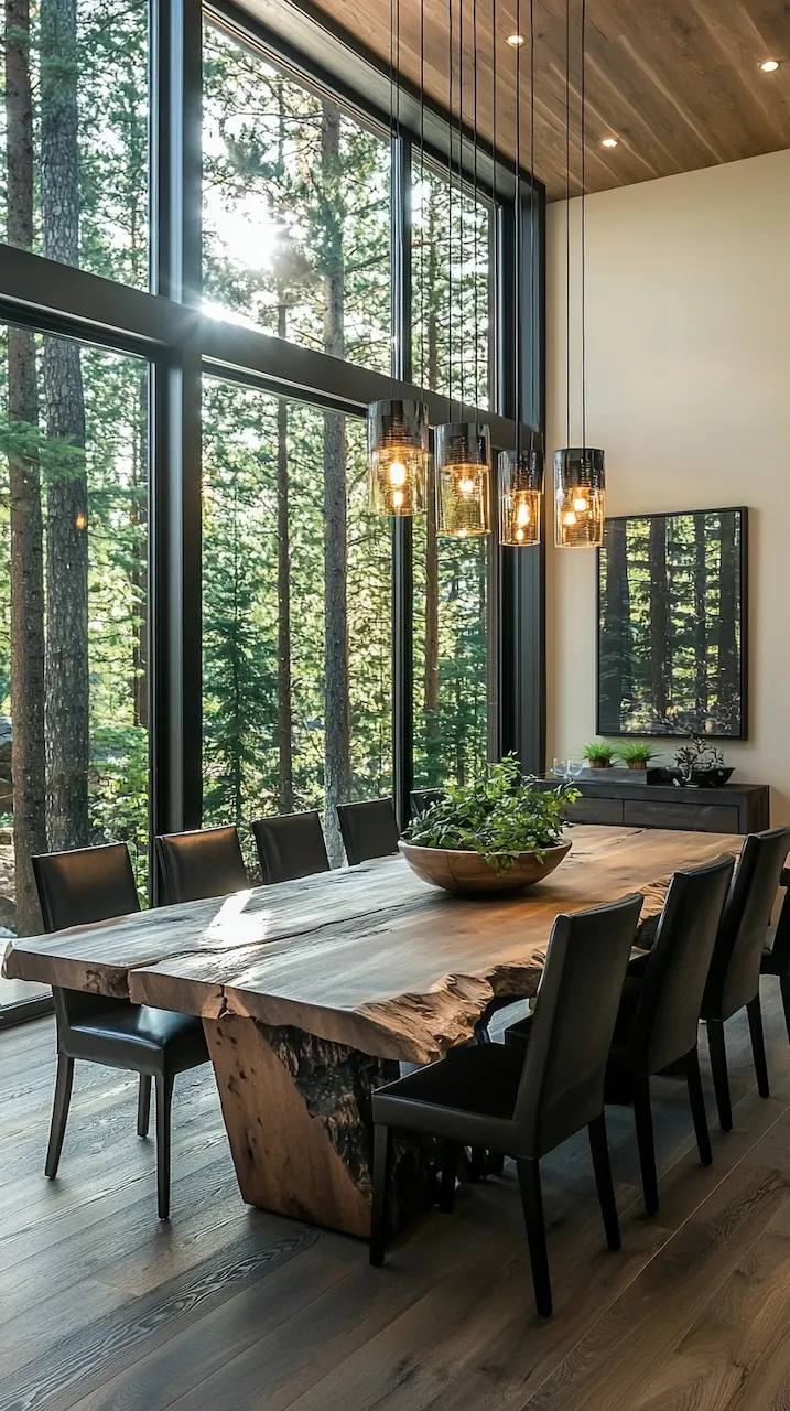 Lighting completes the composition. Above the table, a fixture might float like a satellite—a minimalist ring of LED light, or a kinetic mobile inspired by Calder. These pieces do more than illuminate. They choreograph the room’s energy, casting subtle shadows and creating focal points that evolve throughout the day. Even natural light becomes a design material, filtered through linen sheers or fractured through textured glass.