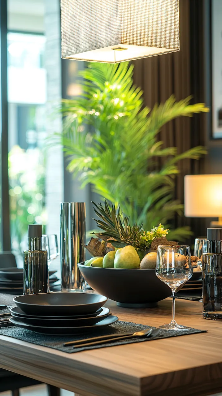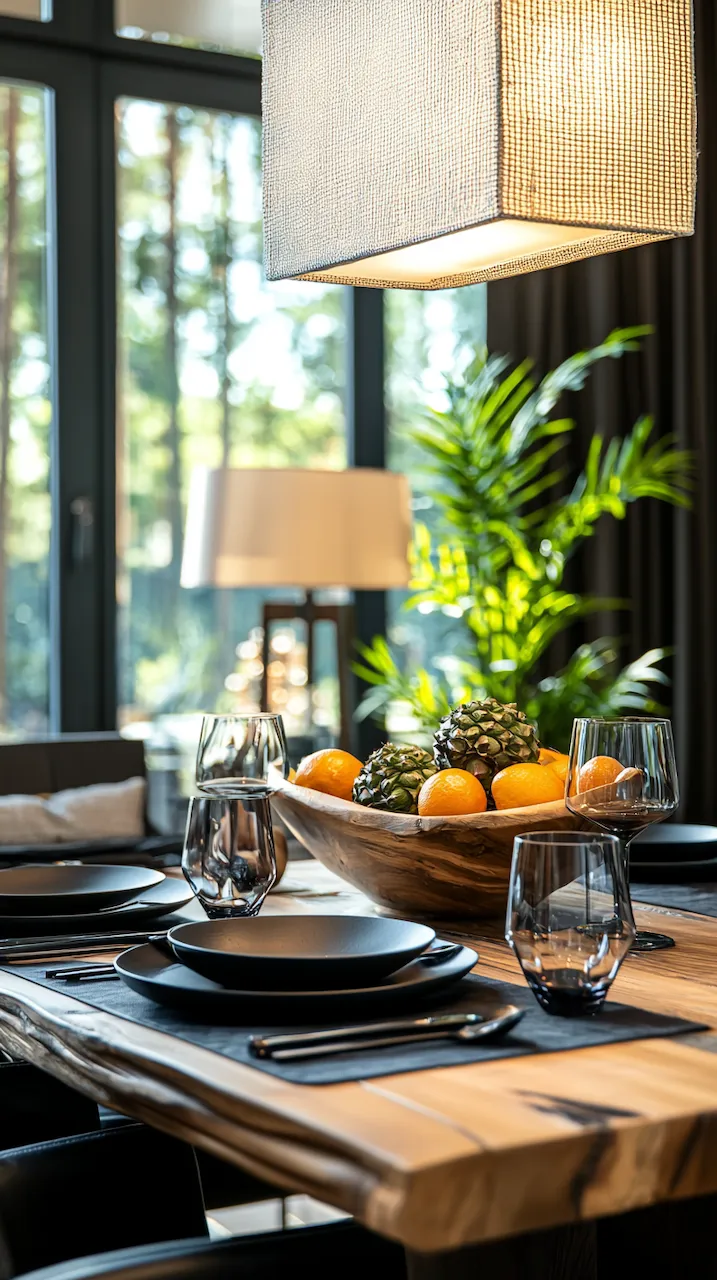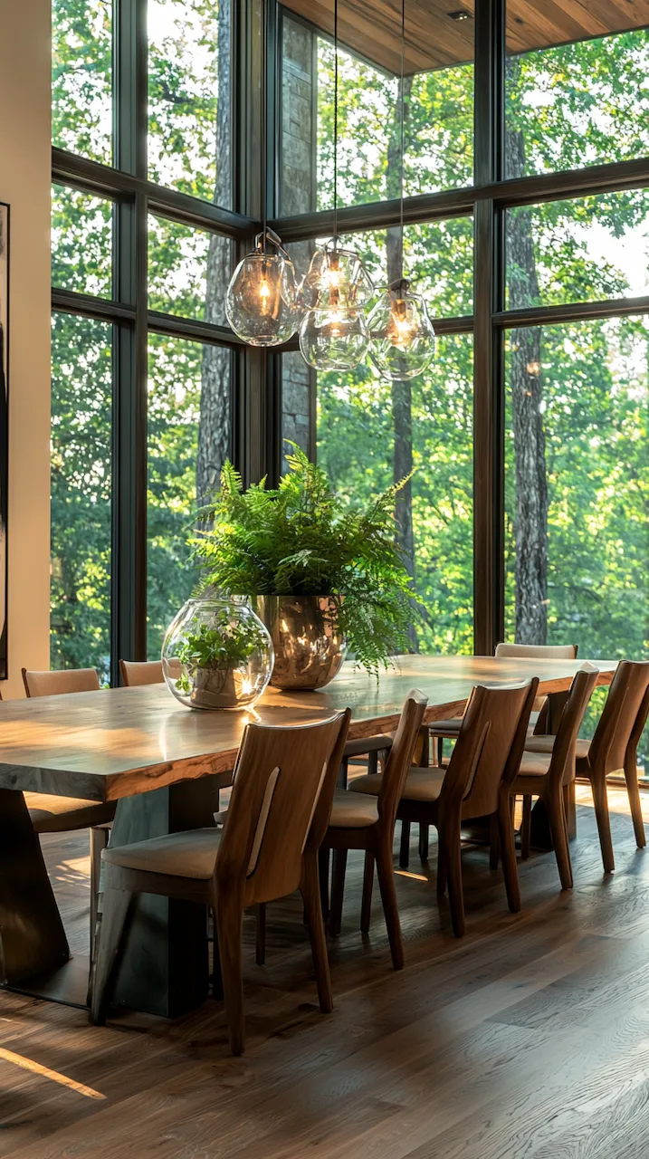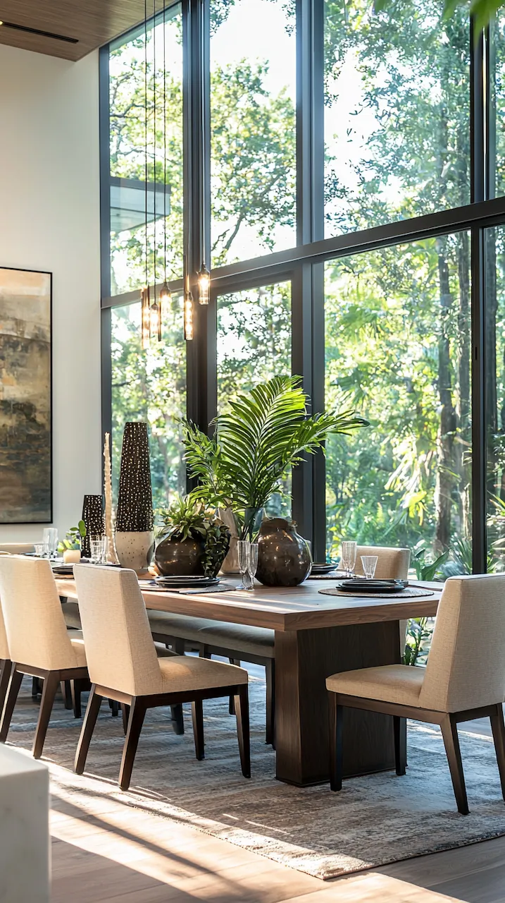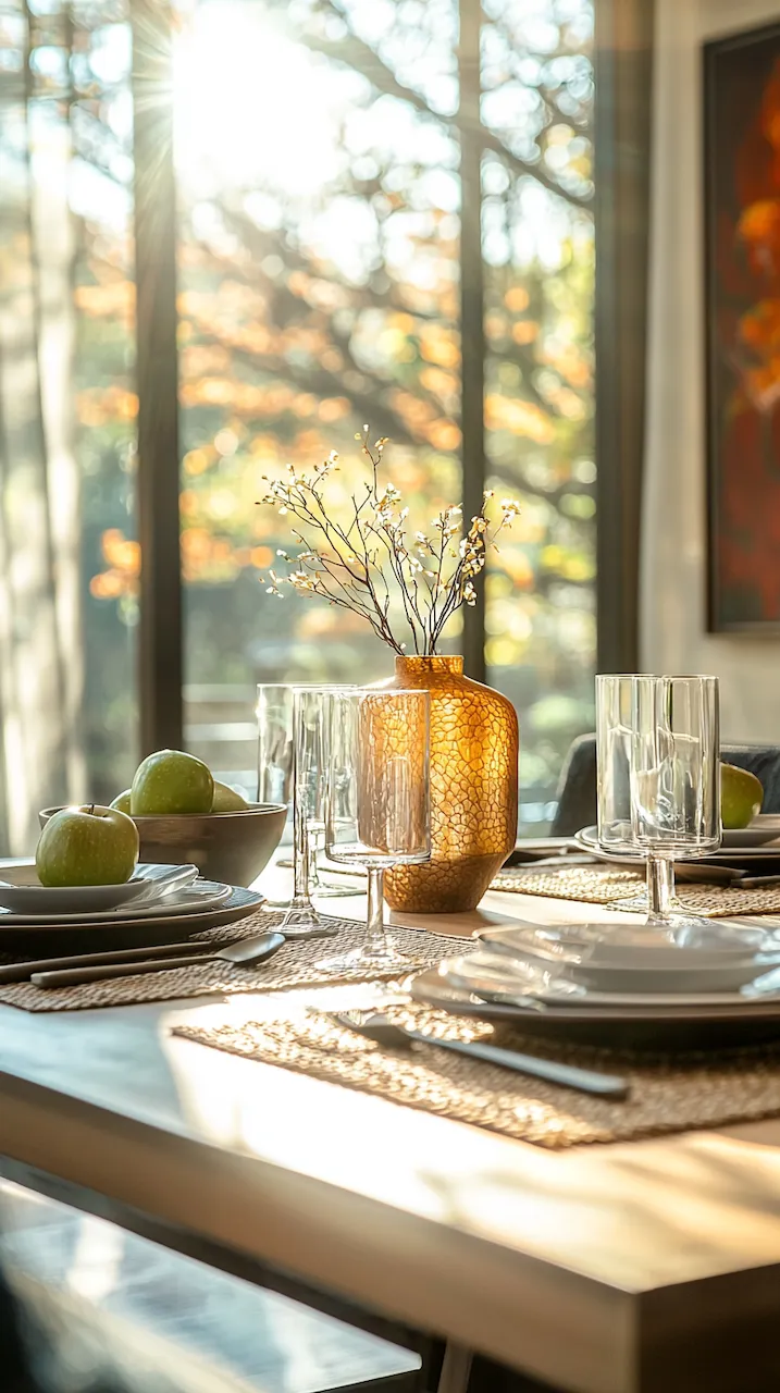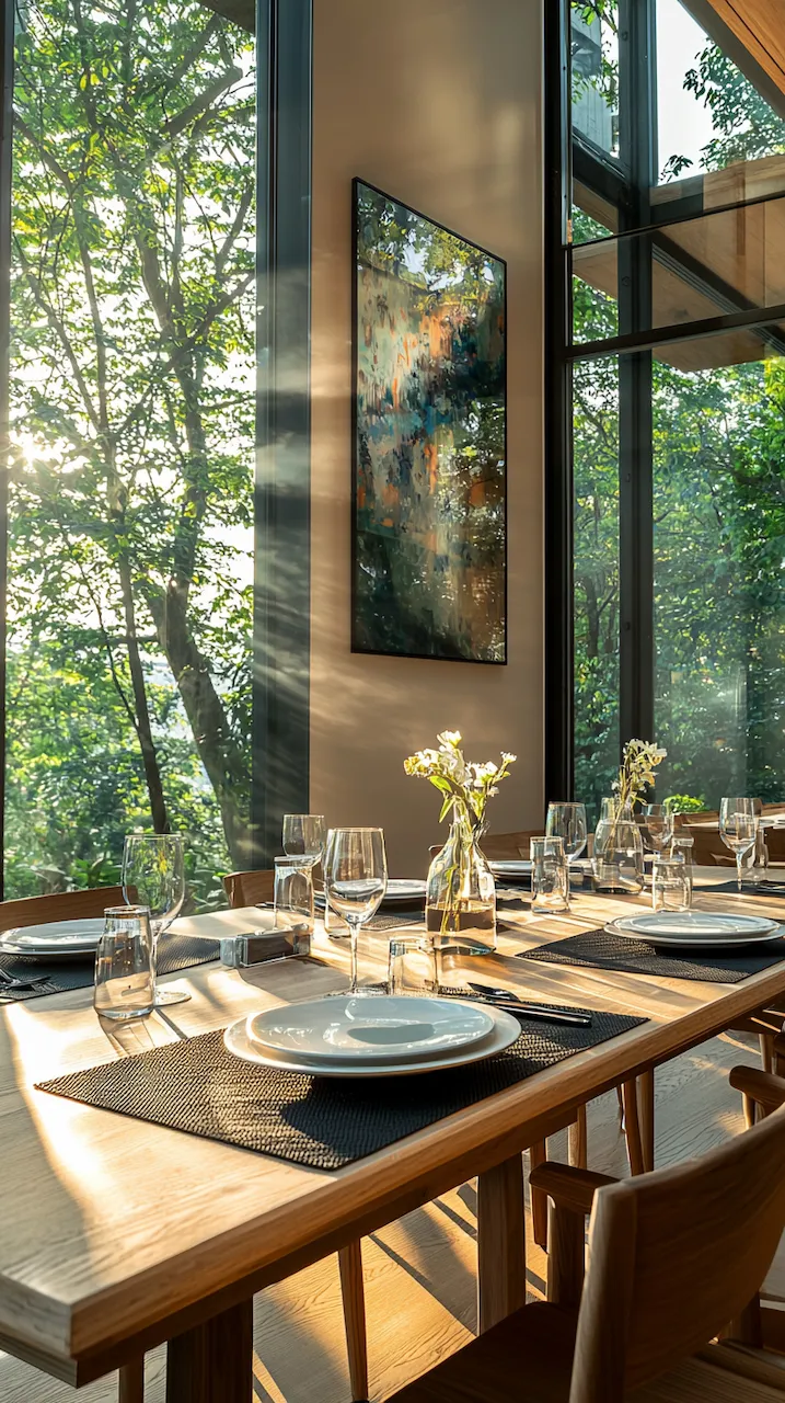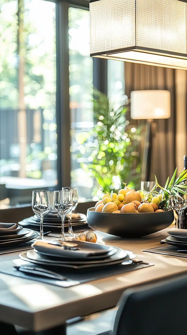Lighting completes the composition. Above the table, a fixture might float like a satellite—a minimalist ring of LED light, or a kinetic mobile inspired by Calder. These pieces do more than illuminate. They choreograph the room’s energy, casting subtle shadows and creating focal points that evolve throughout the day. Even natural light becomes a design material, filtered through linen sheers or fractured through textured glass.