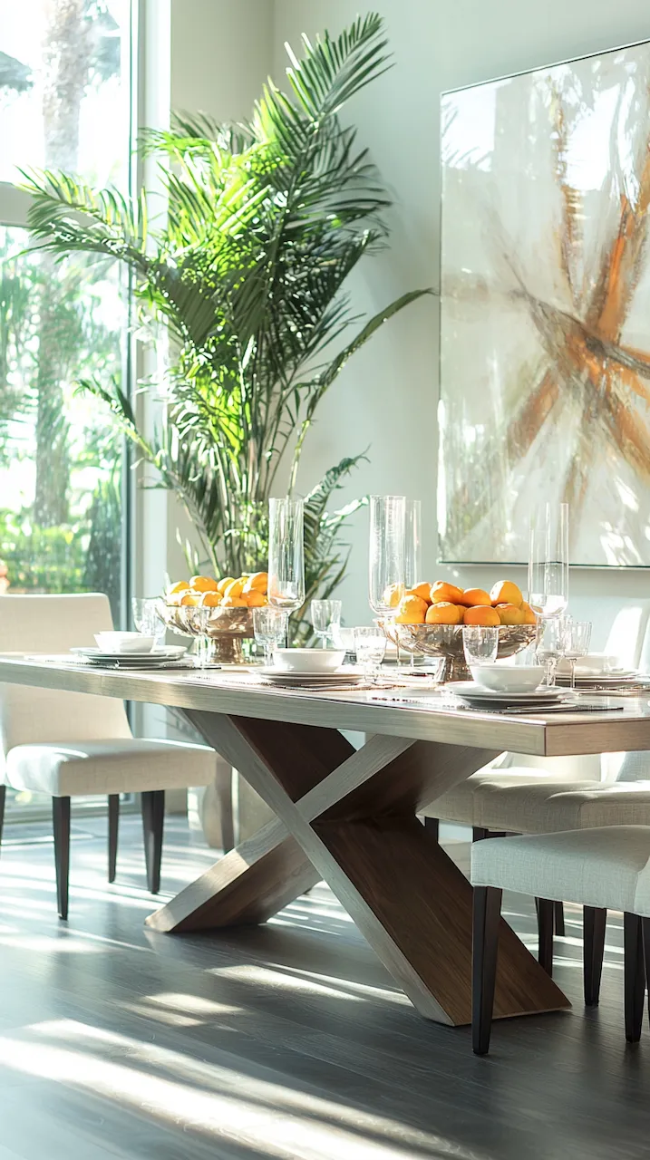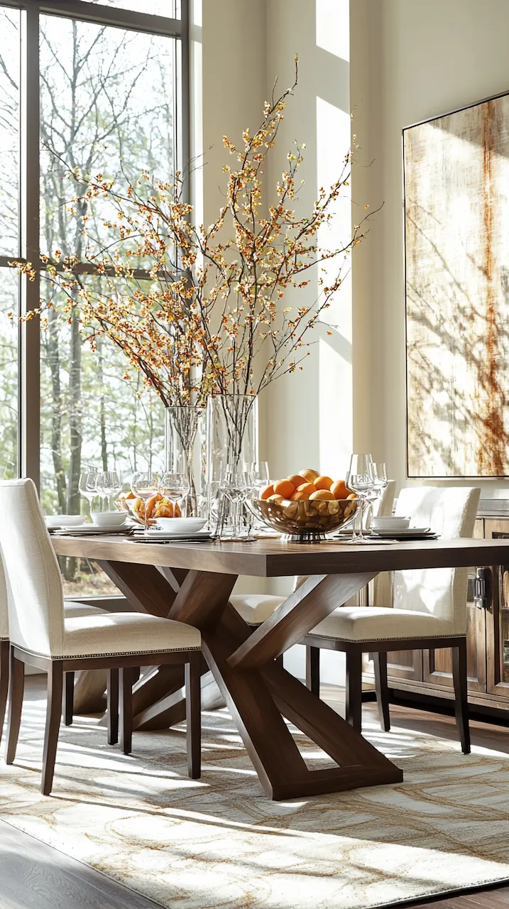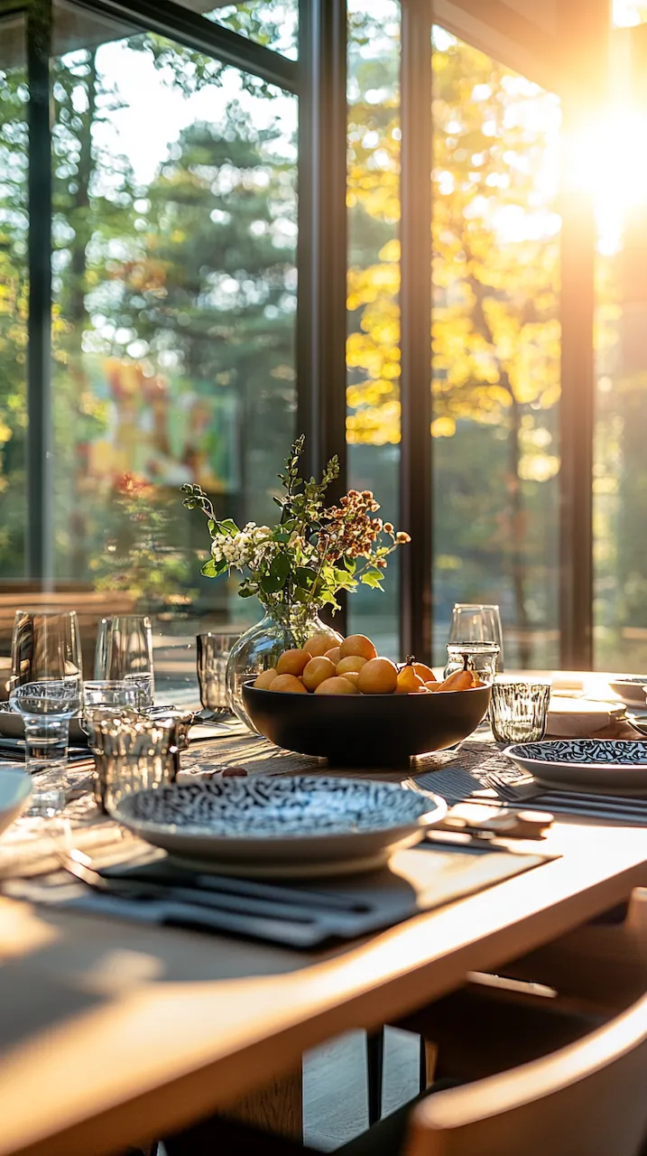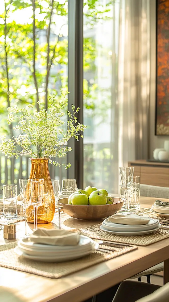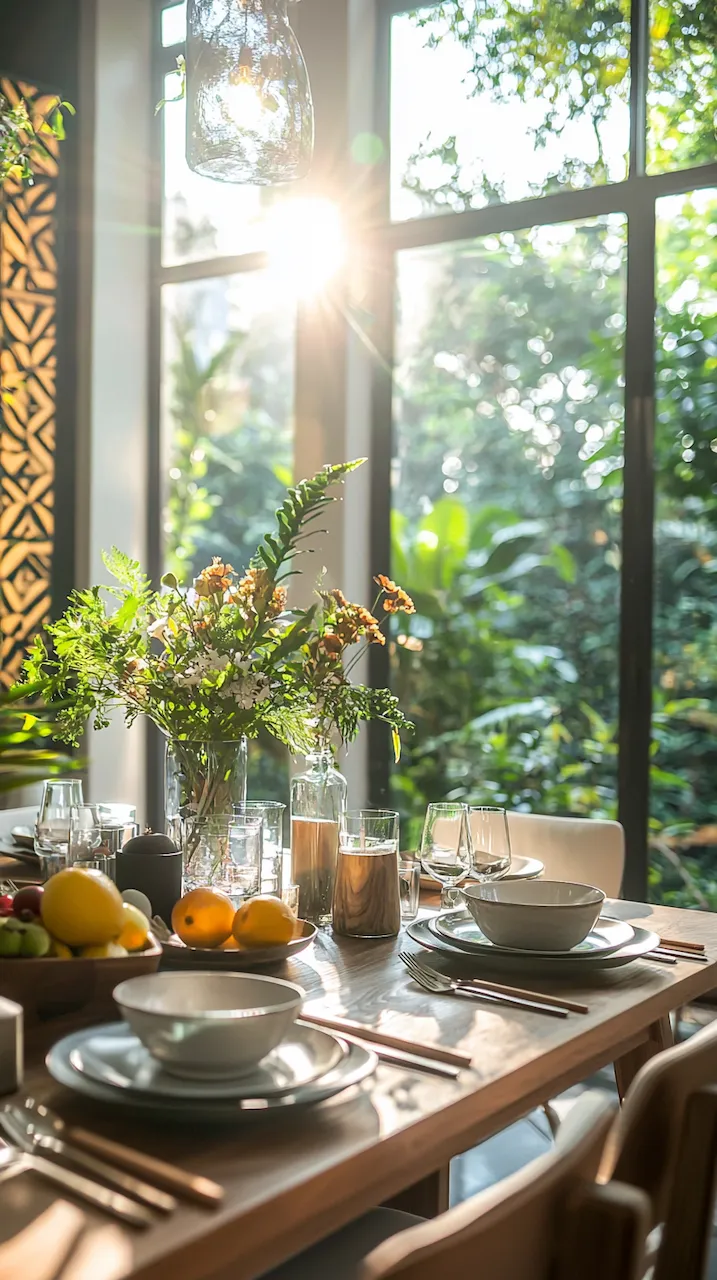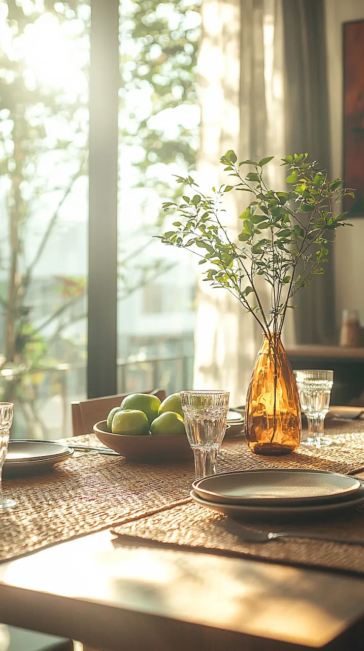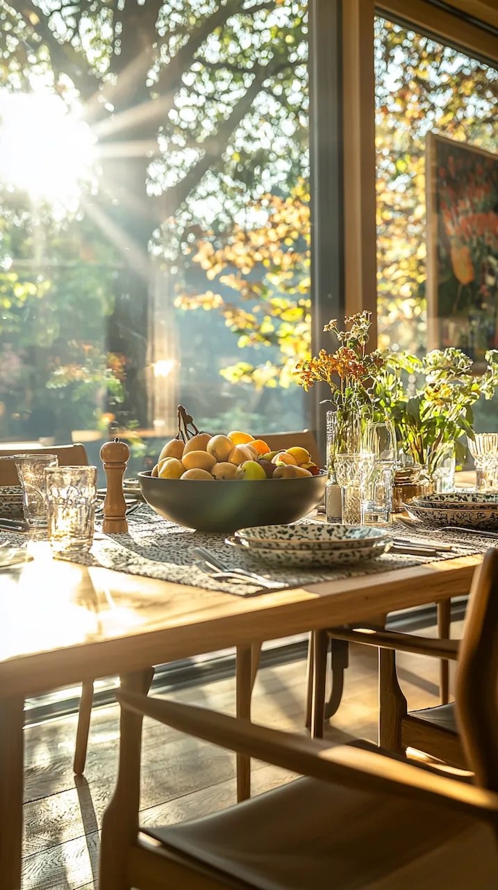 Lighting completes the composition. Above the table, a fixture might float like a satellite—a minimalist ring of LED light, or a kinetic mobile inspired by Calder. These pieces do more than illuminate. They choreograph the room’s energy, casting subtle shadows and creating focal points that evolve throughout the day. Even natural light becomes a design material, filtered through linen sheers or fractured through textured glass.