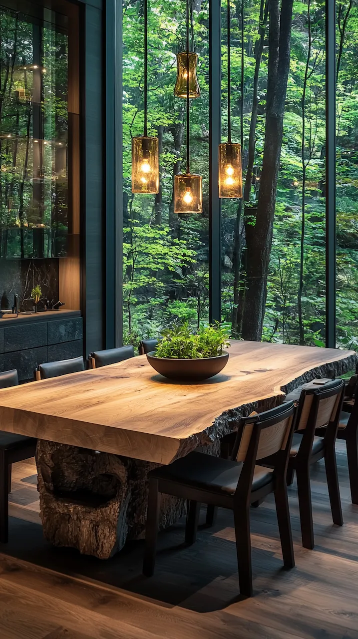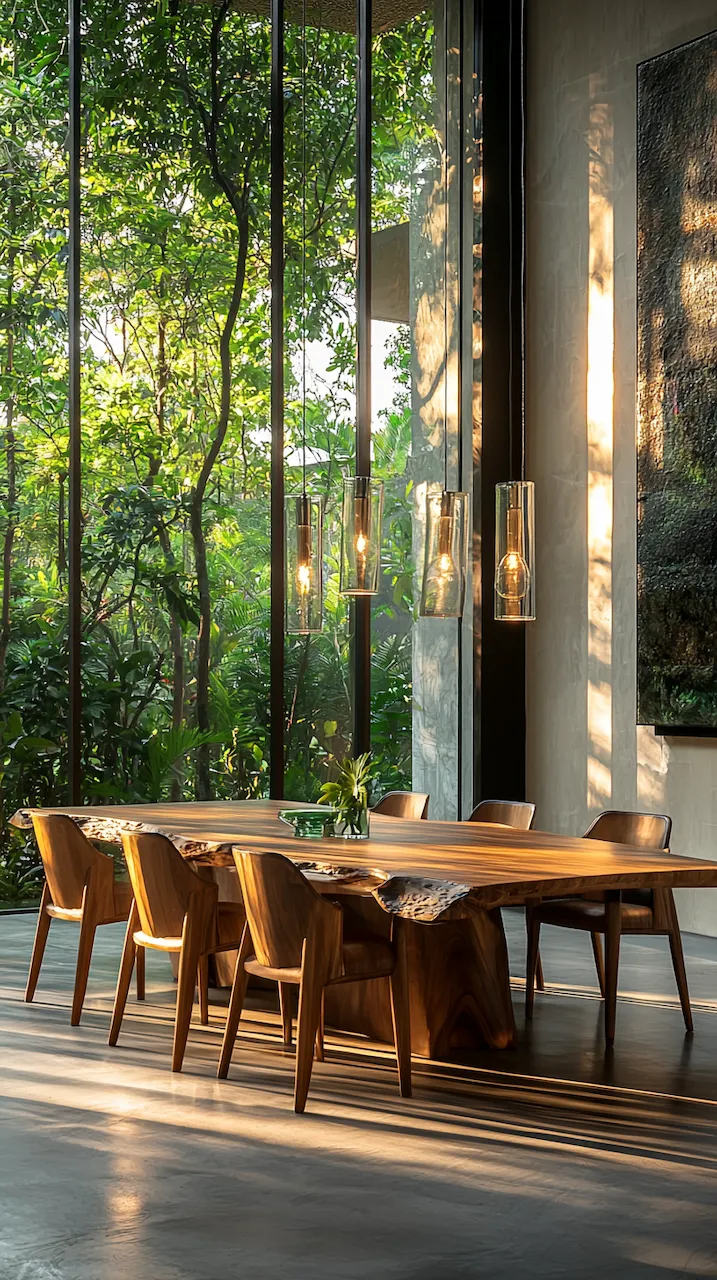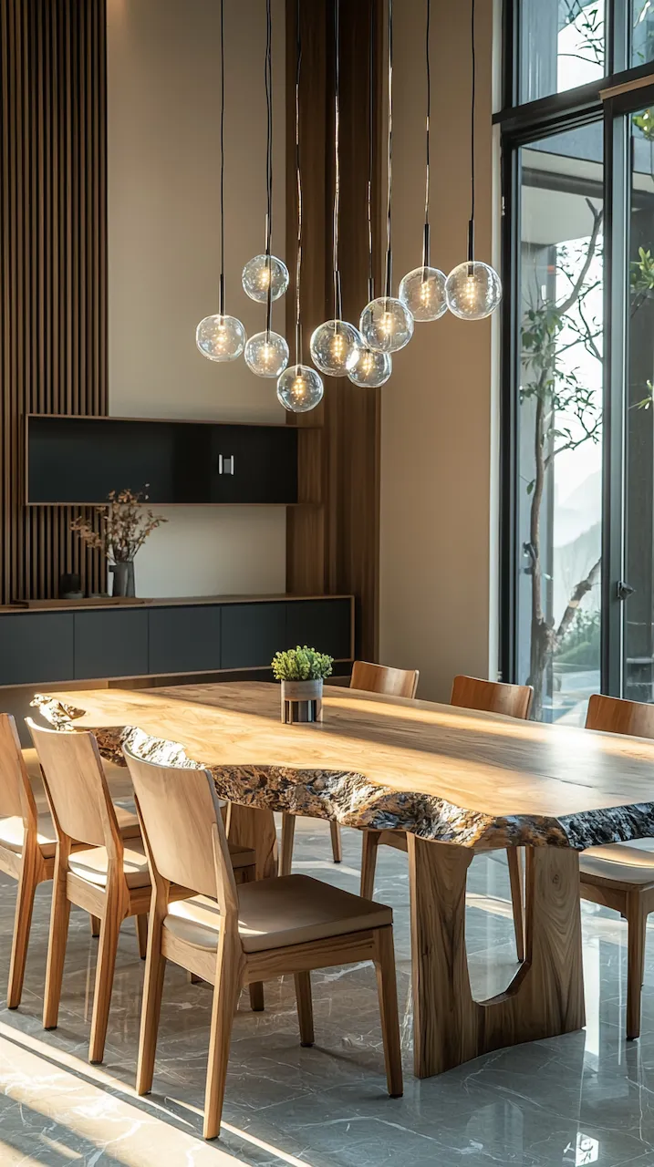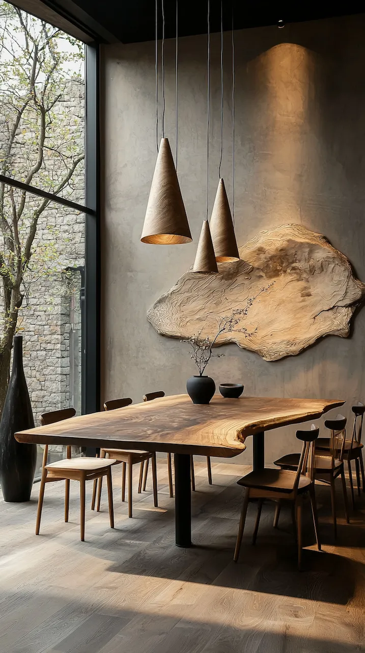This focus on structural storytelling spills over into the rest of the dining space. Chairs are chosen not just for ergonomic support but for visual conversation. A set of molded fiberglass seats might sit beside a rough-hewn bench; a single, jewel-toned velvet armchair may anchor one end of the table like punctuation at the end of a sentence. Walls echo the interplay of softness and strength, perhaps clad in microcement or lined with acoustic panels that double as abstract art.