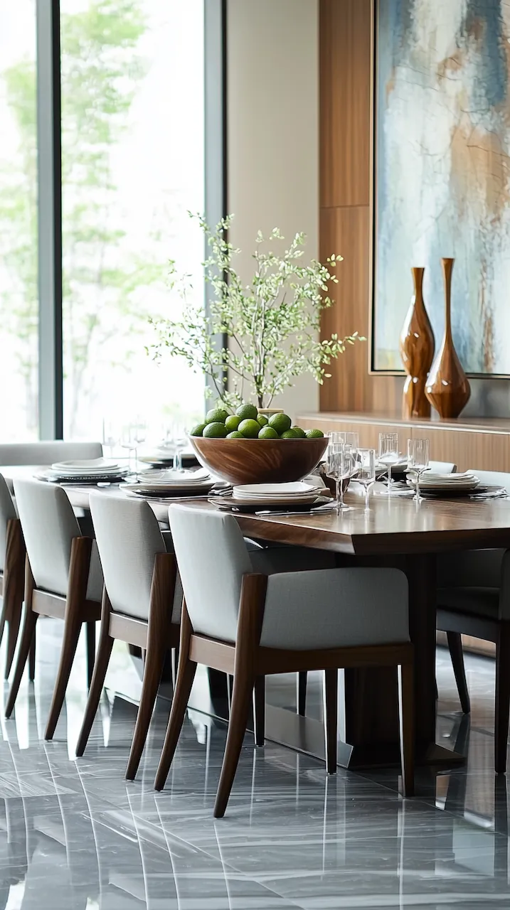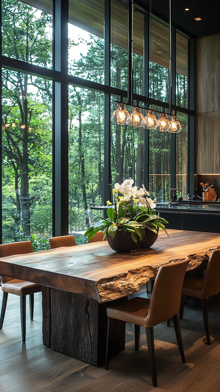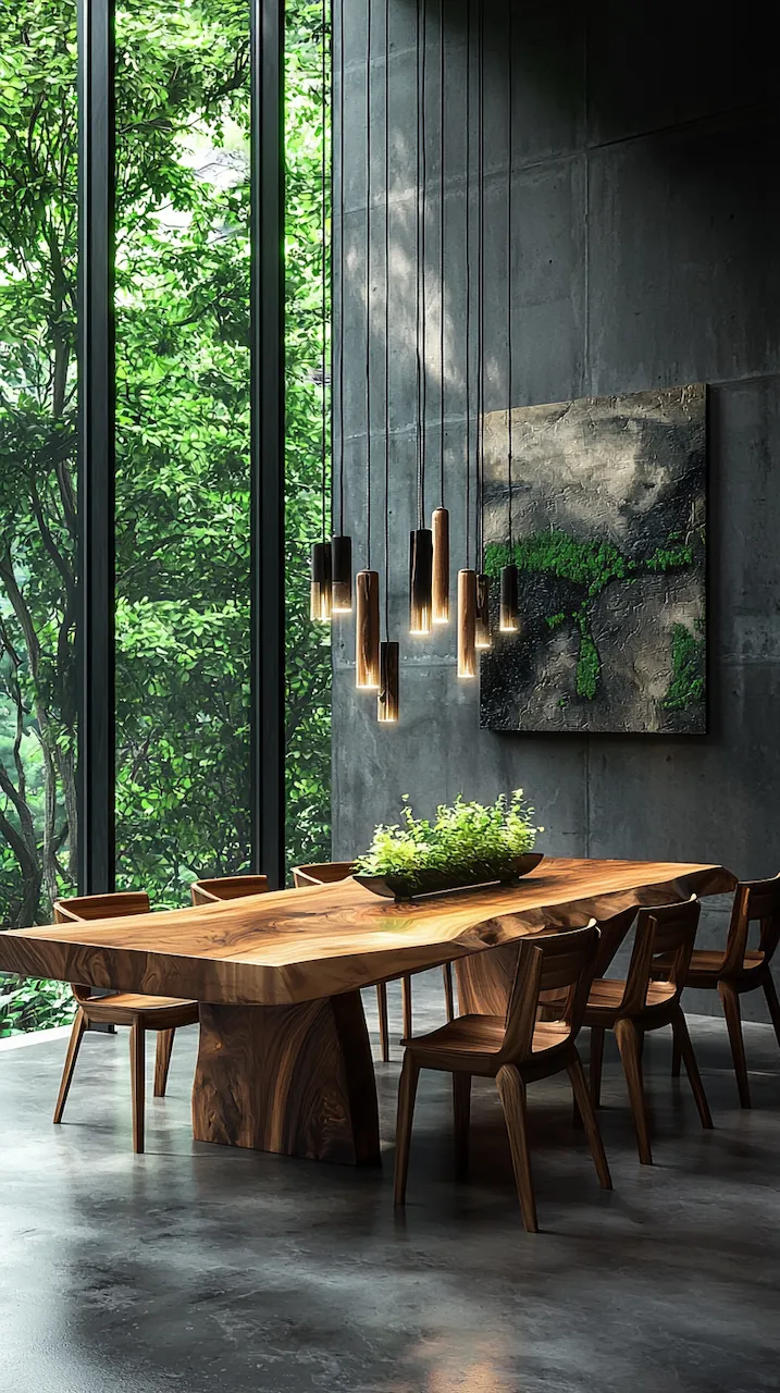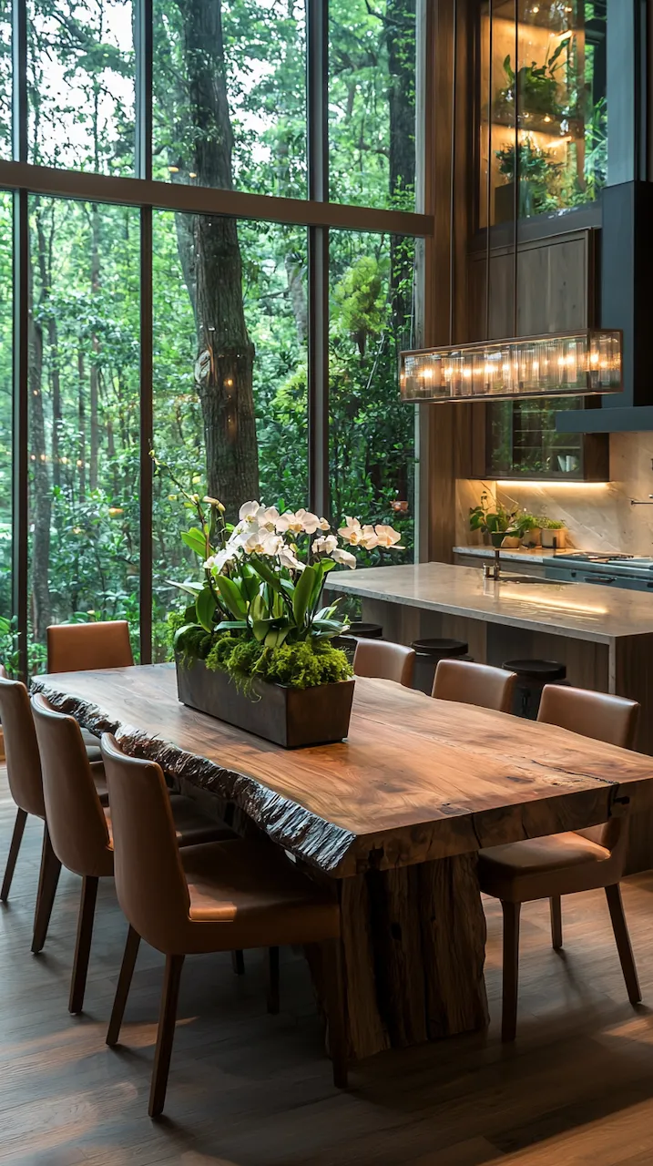 This focus on structural storytelling spills over into the rest of the dining space. Chairs are chosen not just for ergonomic support but for visual conversation. A set of molded fiberglass seats might sit beside a rough-hewn bench; a single, jewel-toned velvet armchair may anchor one end of the table like punctuation at the end of a sentence. Walls echo the interplay of softness and strength, perhaps clad in microcement or lined with acoustic panels that double as abstract art.