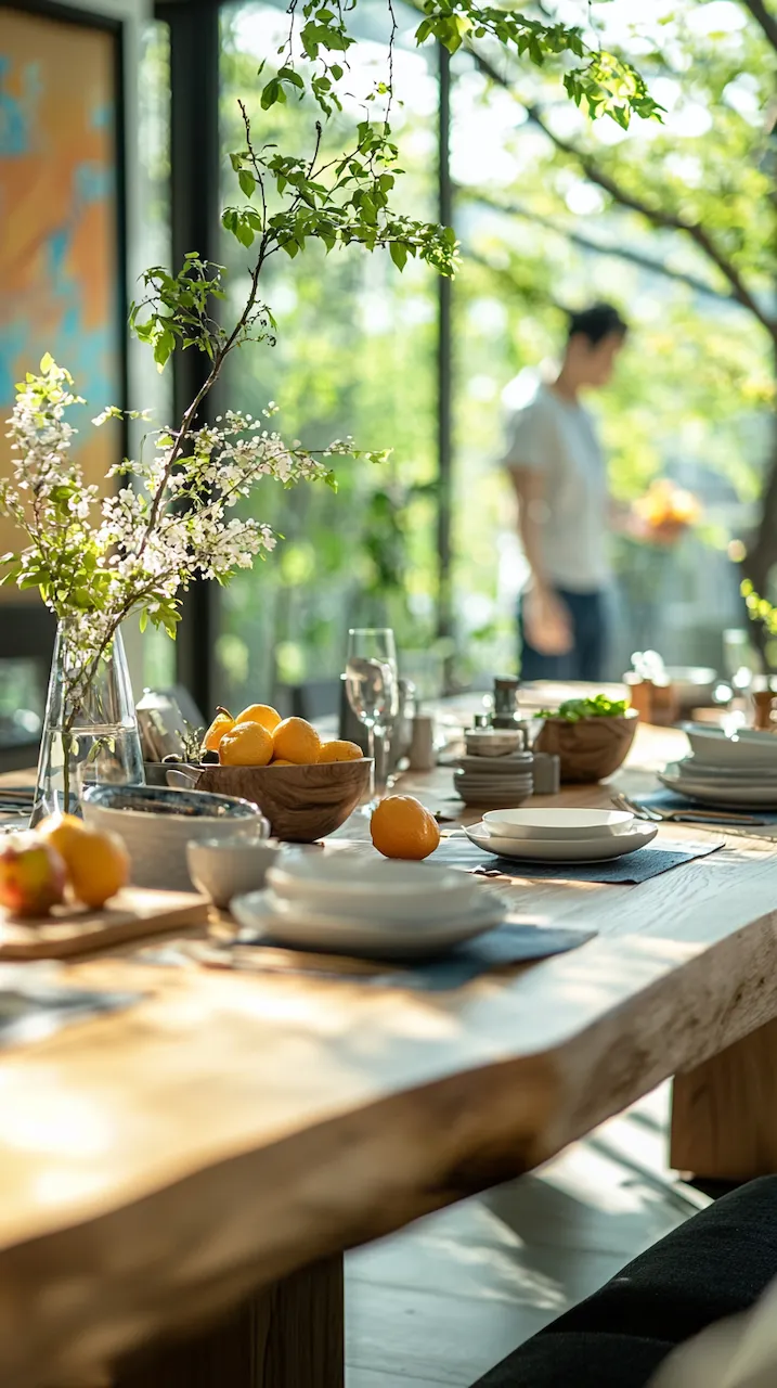 Asymmetry also mirrors the way we live. Life isn’t symmetrical. Our days are uneven, our stories messy, our gatherings fluid. The modern organic dining table acknowledges this. It offers a platform that doesn’t demand perfection but celebrates presence. A table that isn’t rigidly centered allows for flexibility. You can pull up a laptop at one end while someone else sketches at the other. It welcomes imperfection, adapts to shifting needs, and resists the sterile symmetry of a catalog.