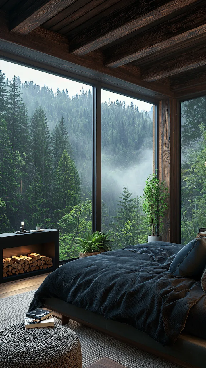 Even the windows, often treated as afterthoughts, deserve sculptural attention. Instead of gauzy curtains, imagine floor-to-ceiling panels in heavy wool or silk, pleated in precision, framing the darkness with intentionality. Hardware in bronze or matte iron extends the material language, reinforcing the rhythm of the room.