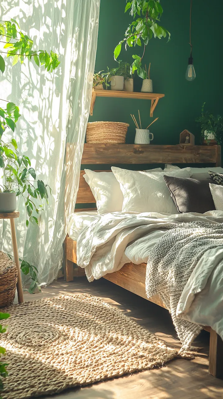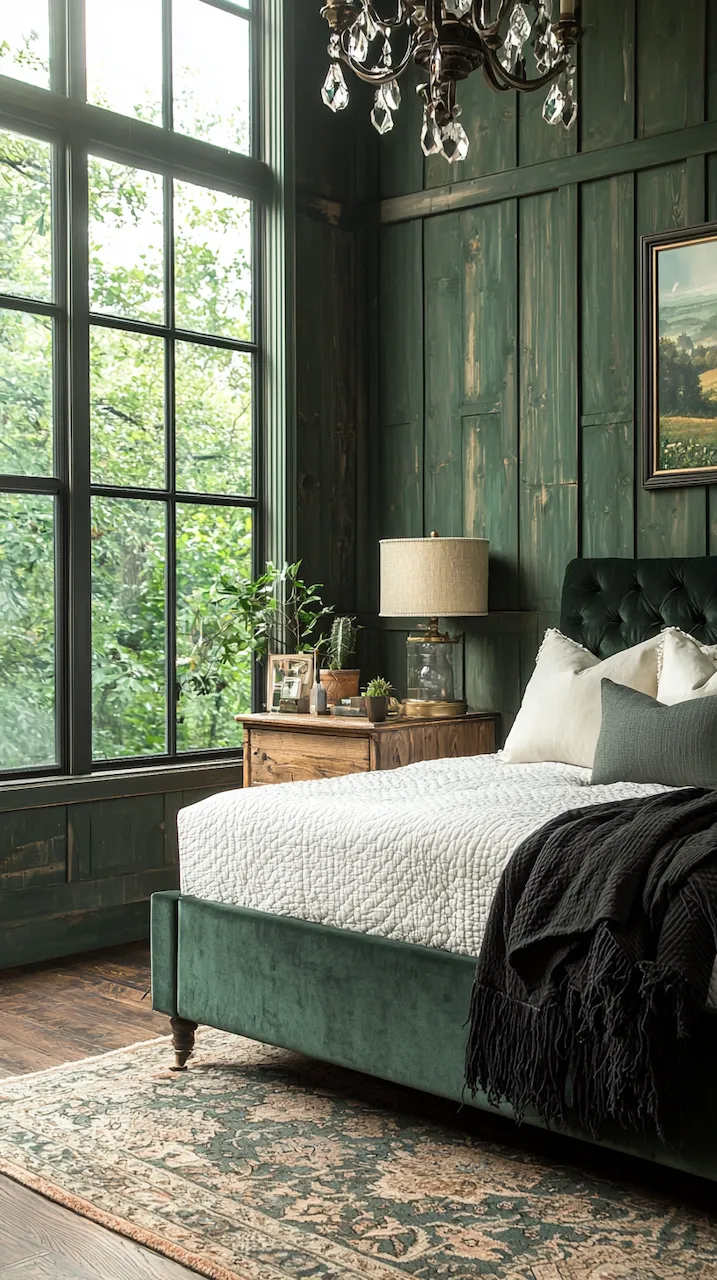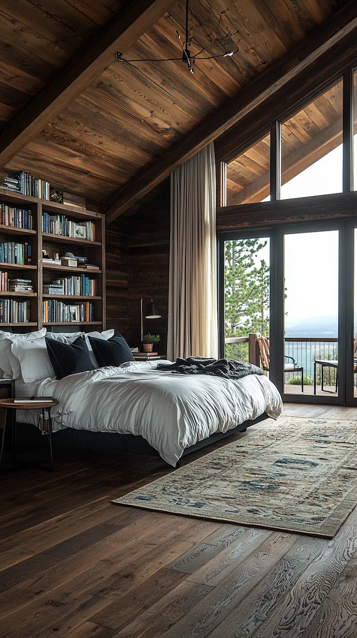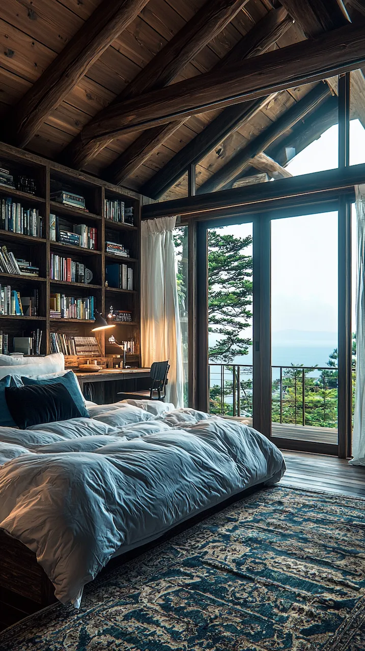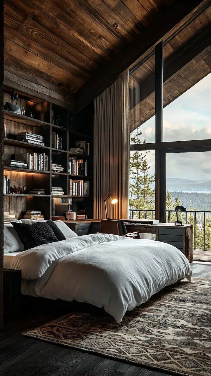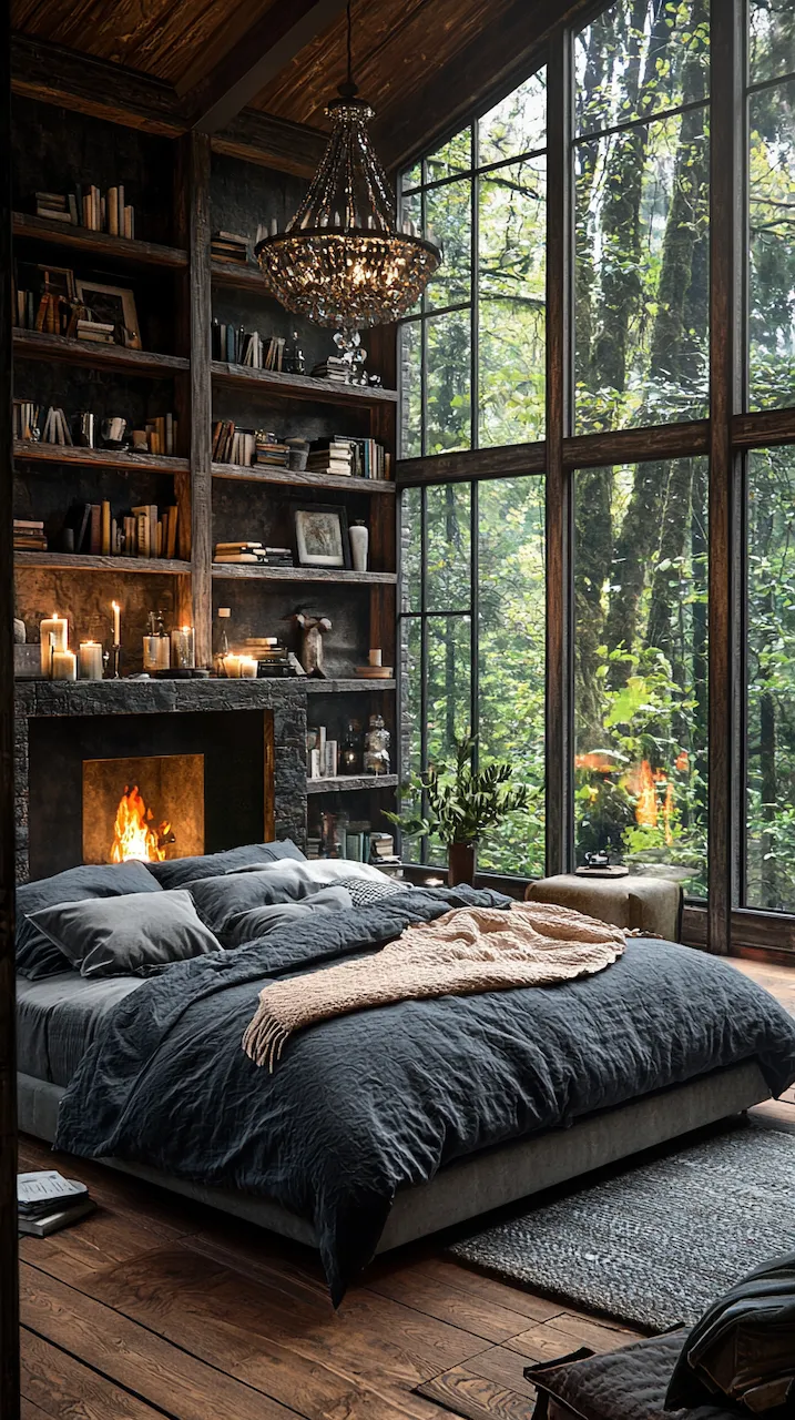 Built-ins become the unsung heroes of small or moody bedrooms. Floor-to-ceiling shelves in matte black or deep walnut provide vertical interest while housing curated collections that soften the intensity of dark tones. Think stacked art books, ceramics in muted glazes, or even color-blocked vintage novels arranged with sculptural intent. These built-ins function like gallery walls: curated, storytelling, and deeply personal.