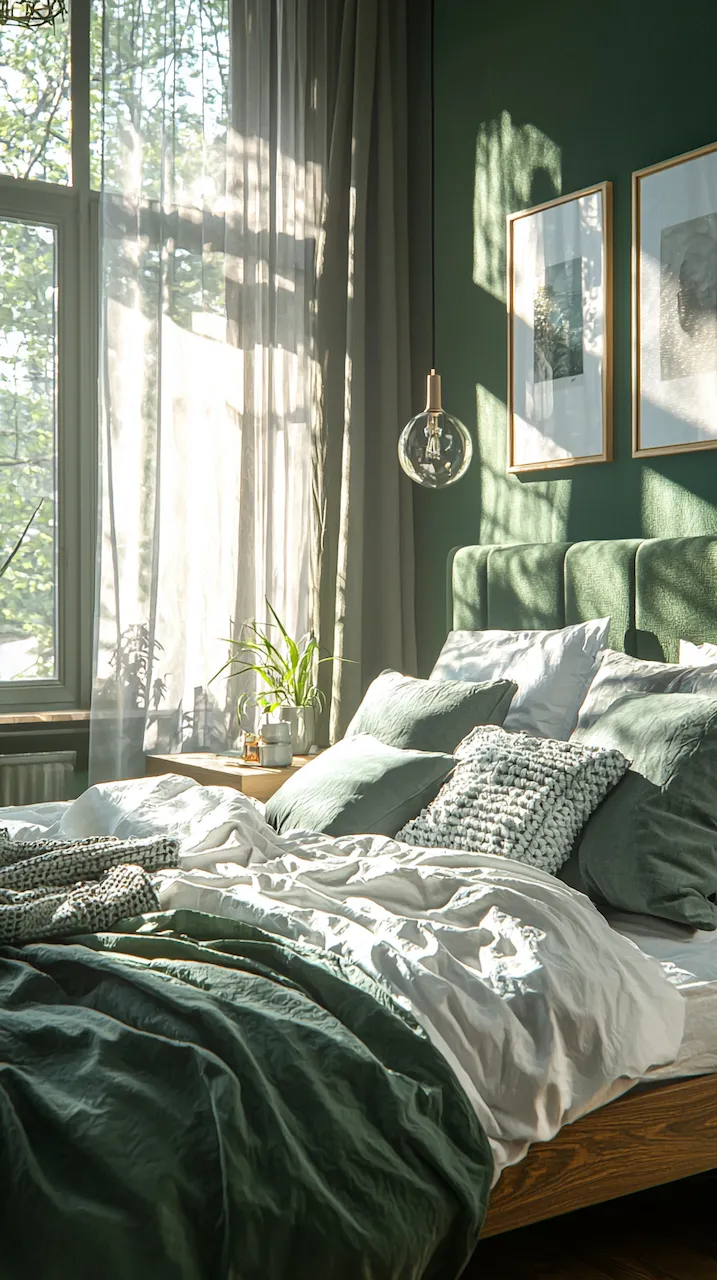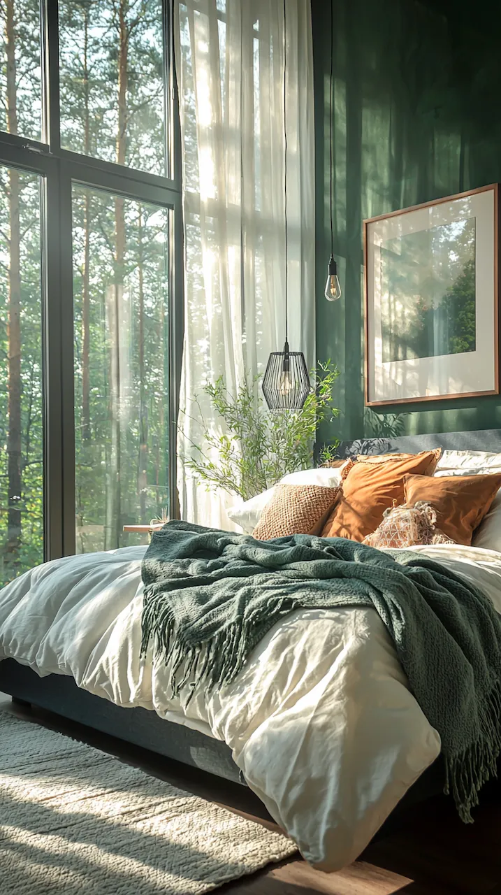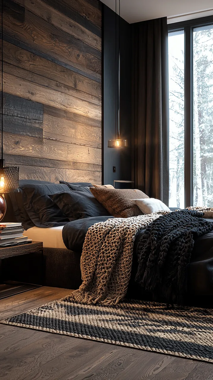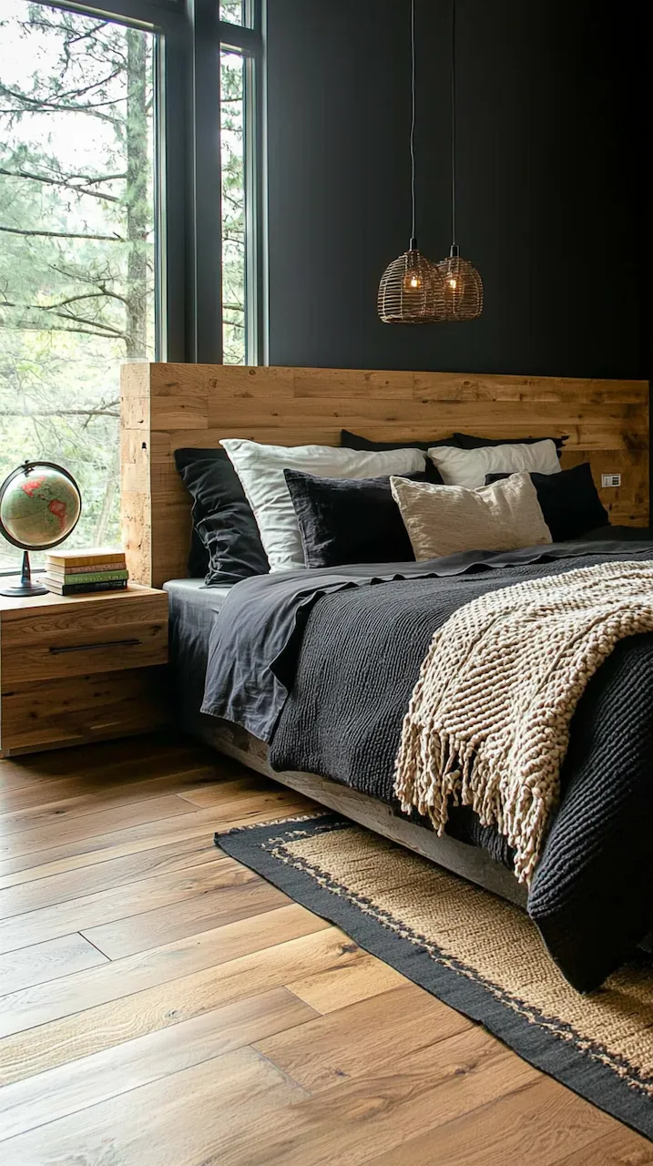 The power of asymmetry in dark-accented bedrooms is that it challenges the eye and rewards the observer. A singular pendant light, for instance, may hang to the left of the bed, casting a pool of soft golden light over a sculptural chair in marbled resin. On the opposite side, perhaps a built-in shelf floats mid-wall, hosting a rotating collection of design books, vintage Polaroids, and ceramics that look like they were dug from a Scandinavian forest.