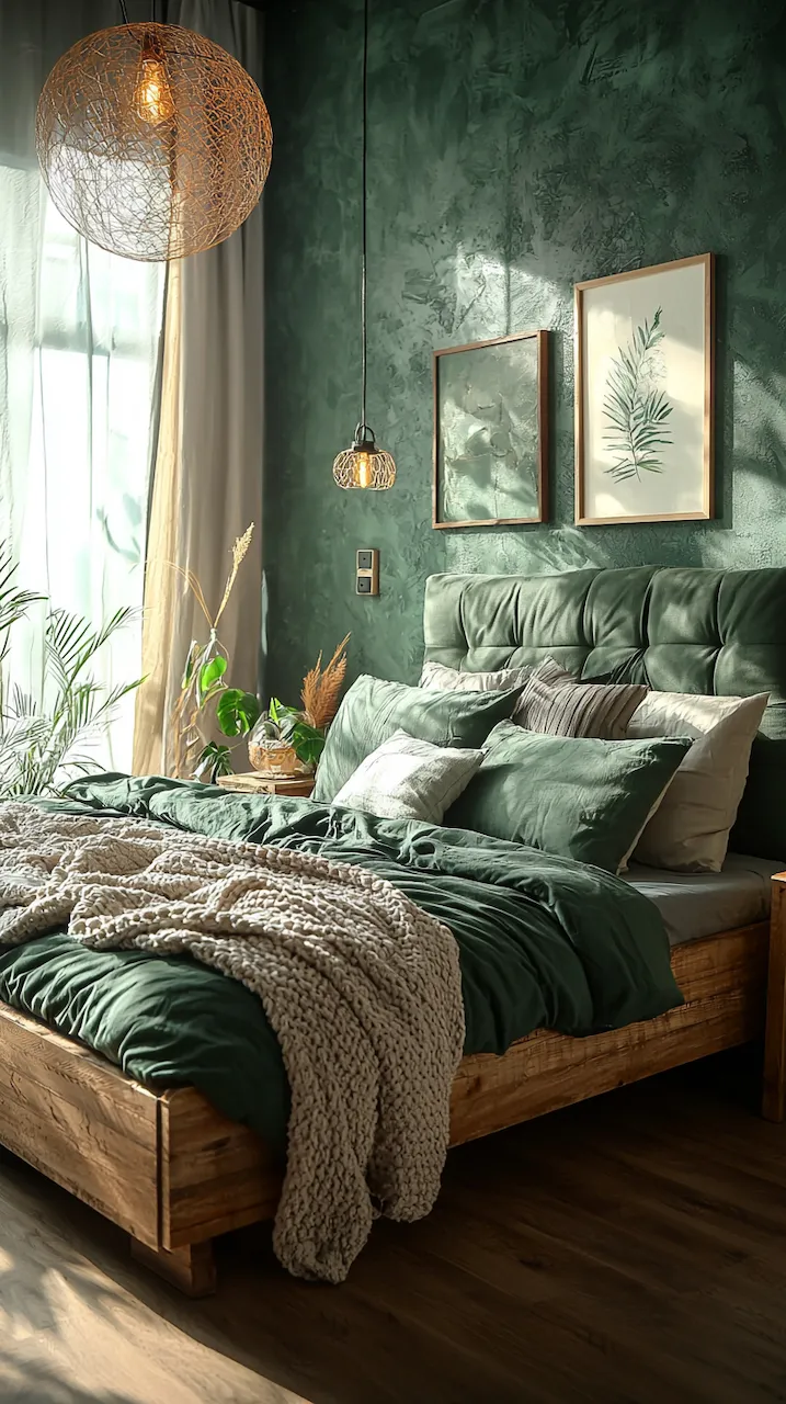 The bed itself, often the center of attention, should act as both sculpture and sanctuary. A high-back headboard upholstered in velvet or boucle in a deep, tactile tone creates a sense of protective enclosure. Flanking it with low-slung nightstands in contrasting finishes — maybe blackened brass or raw-edge stone — adds texture and functional asymmetry. Each piece has weight and mass; each placement has intent.