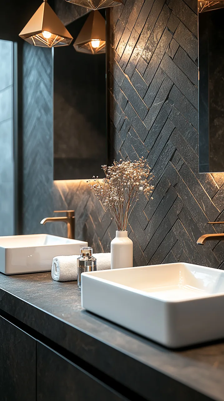 Tilework offers another canvas for asymmetry. Instead of blanketing the entire bathroom in identical tiles, choose to emphasize one wall—perhaps the one behind the vanity—in a rich, matte black tile, while the others remain in subtly grained wood. Or use tiles with directional texture, like a chevron or staggered stack, and apply them only halfway up a wall. These decisions create zones within the room, visually mapping how the space is used and moved through.