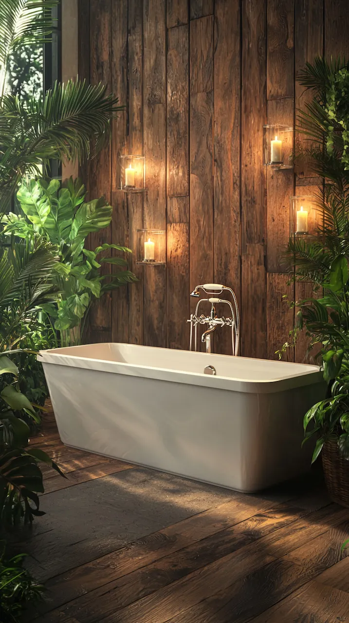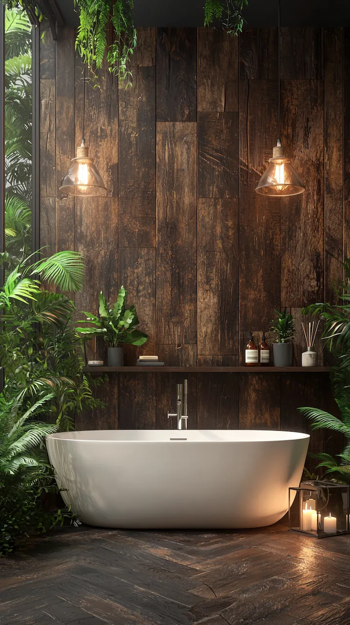 Materials must converse with one another. Use wood with varied grain and knotting to keep the space from looking too polished. Counter this with clean-lined, minimalist plumbing fixtures. The rustic does not cancel out the modern; they hold each other in tension. A steel-framed mirror or a polished concrete floor can balance a wood-planked wall. The secret is proportion and restraint.