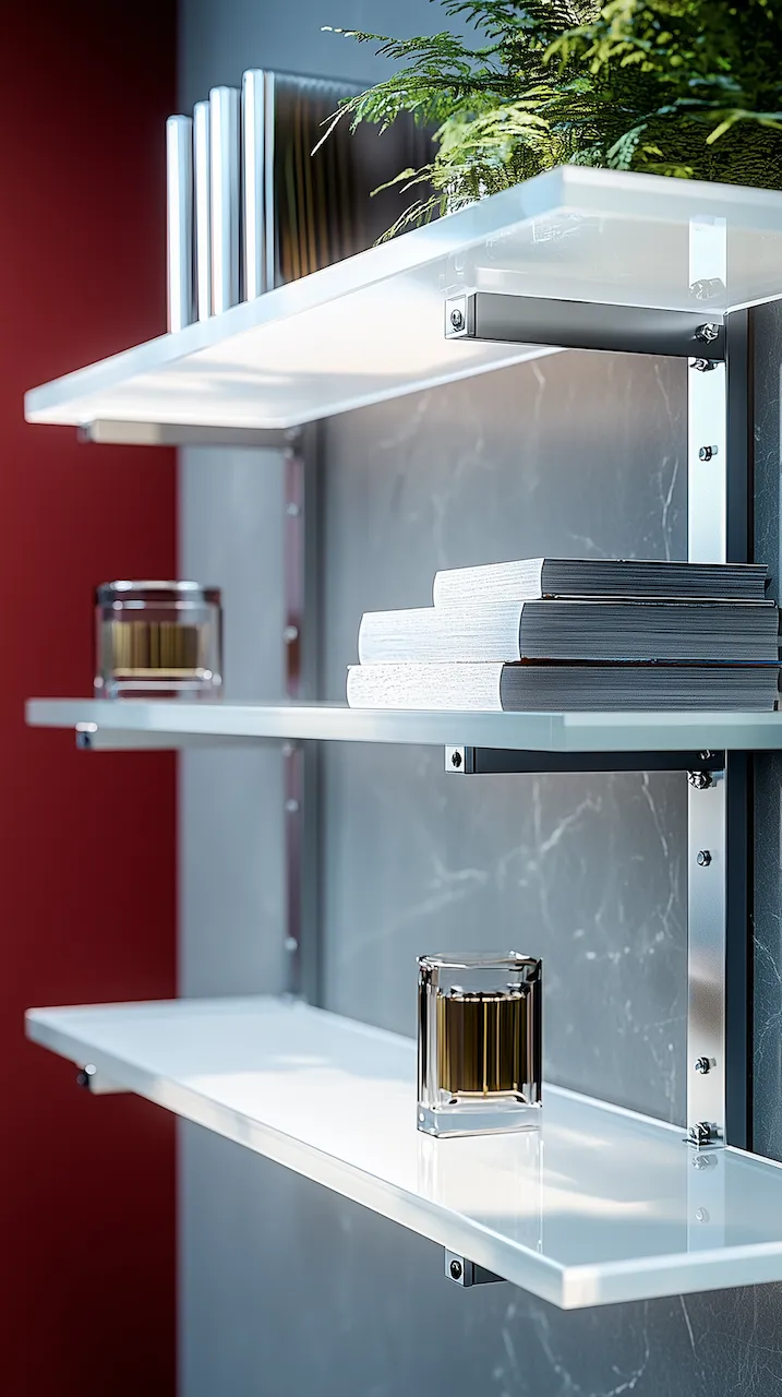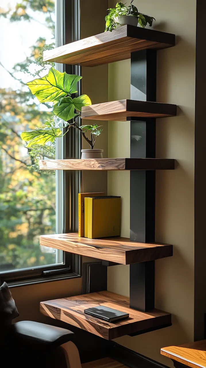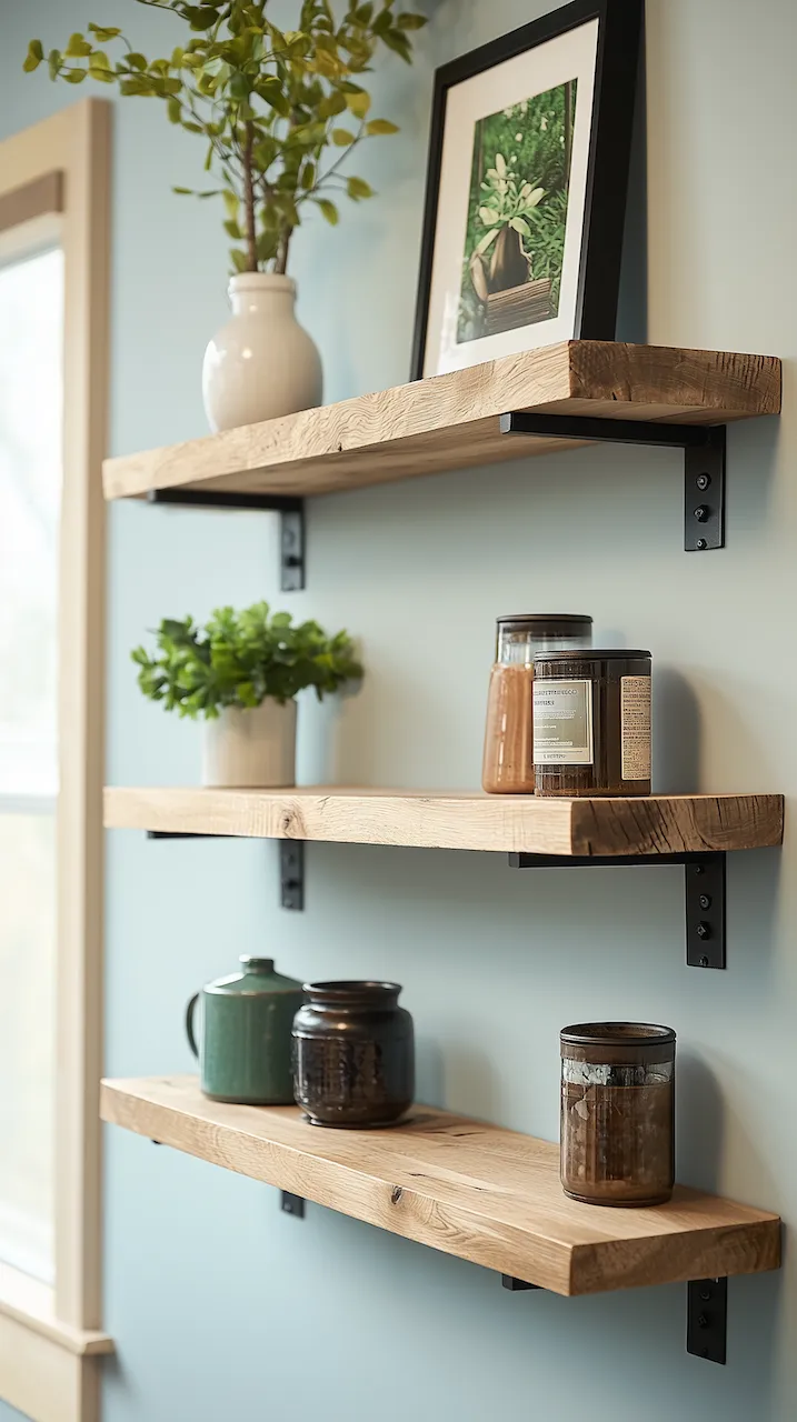 Not everyone opens their front door to a grand hall or endless wall space. Compact apartments can still breathe thanks to shelves that work up, not out.