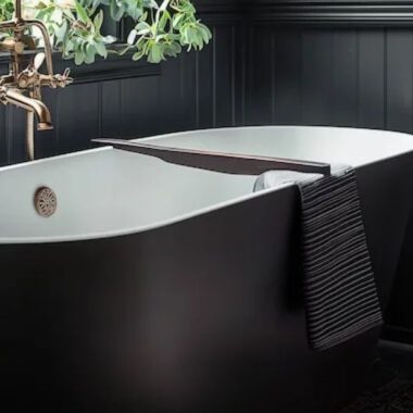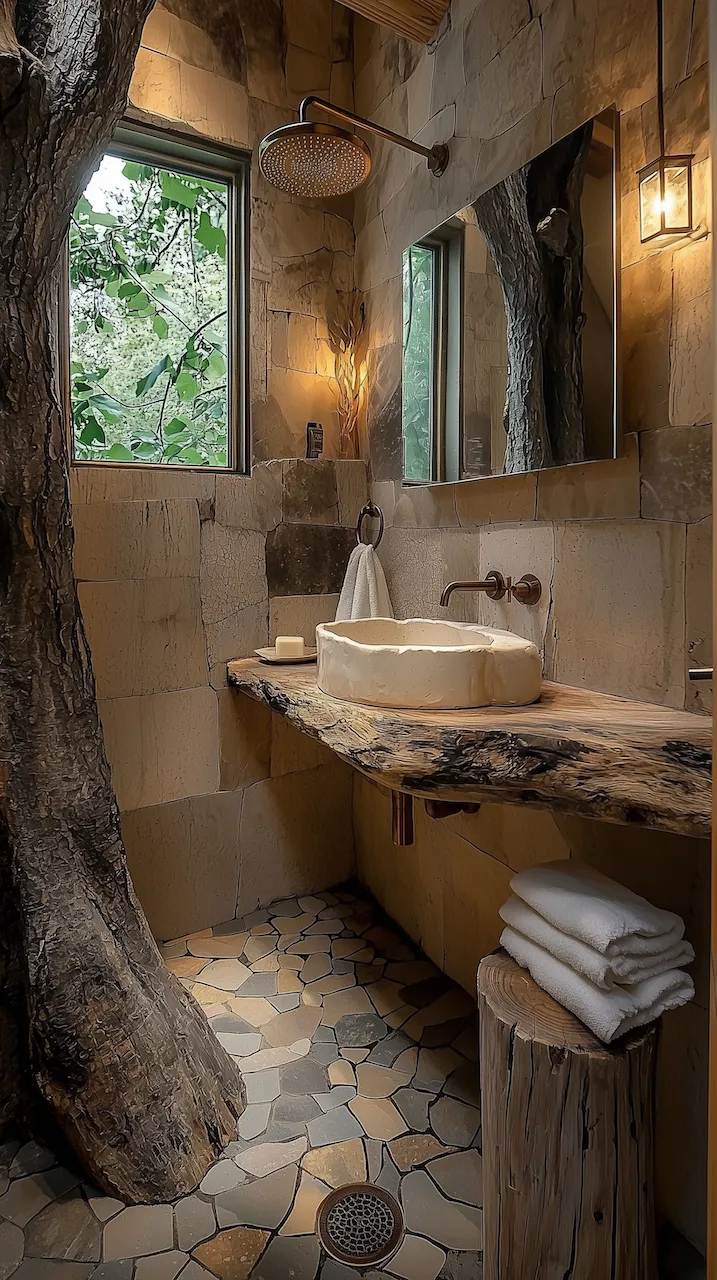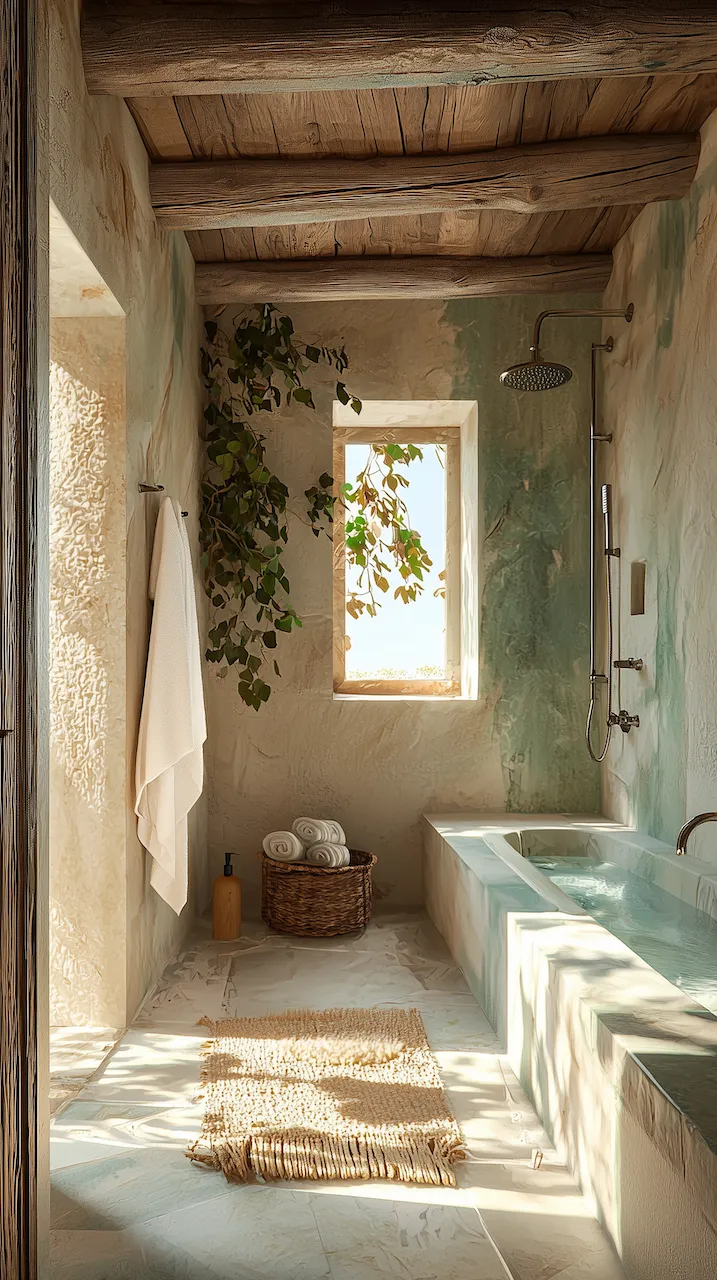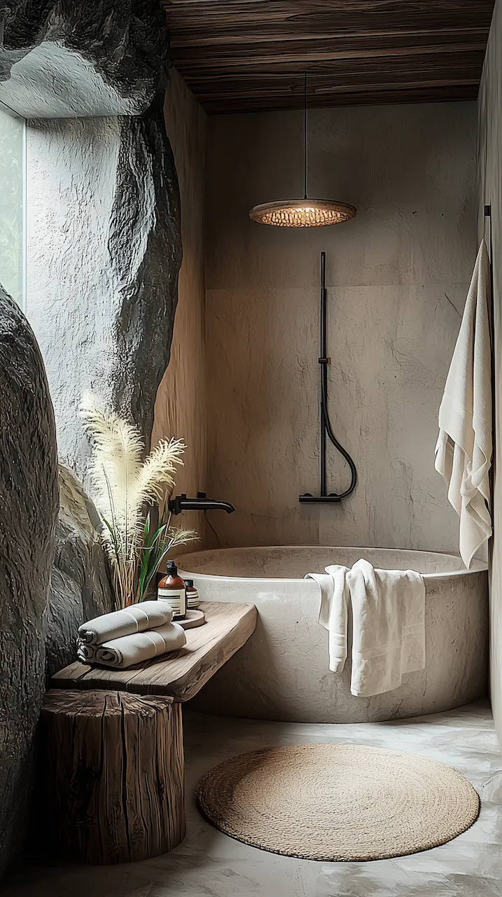 Texture plays the supporting role, with a nubby cotton rug, breezy linen towels, and a tiny bundle of eucalyptus hanging from the showerhead. Those little details hush jangled nerves and nudge the room closer to a five-minute holiday.