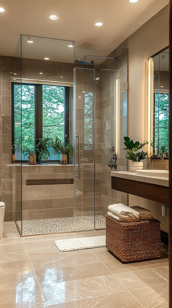 Swap a tub for a walk-in shower crowned by a clean, frameless glass door. Suddenly the space feels twice as wide, which is heaven sent when two kids must get rinsed and ready before you even finish your coffee.