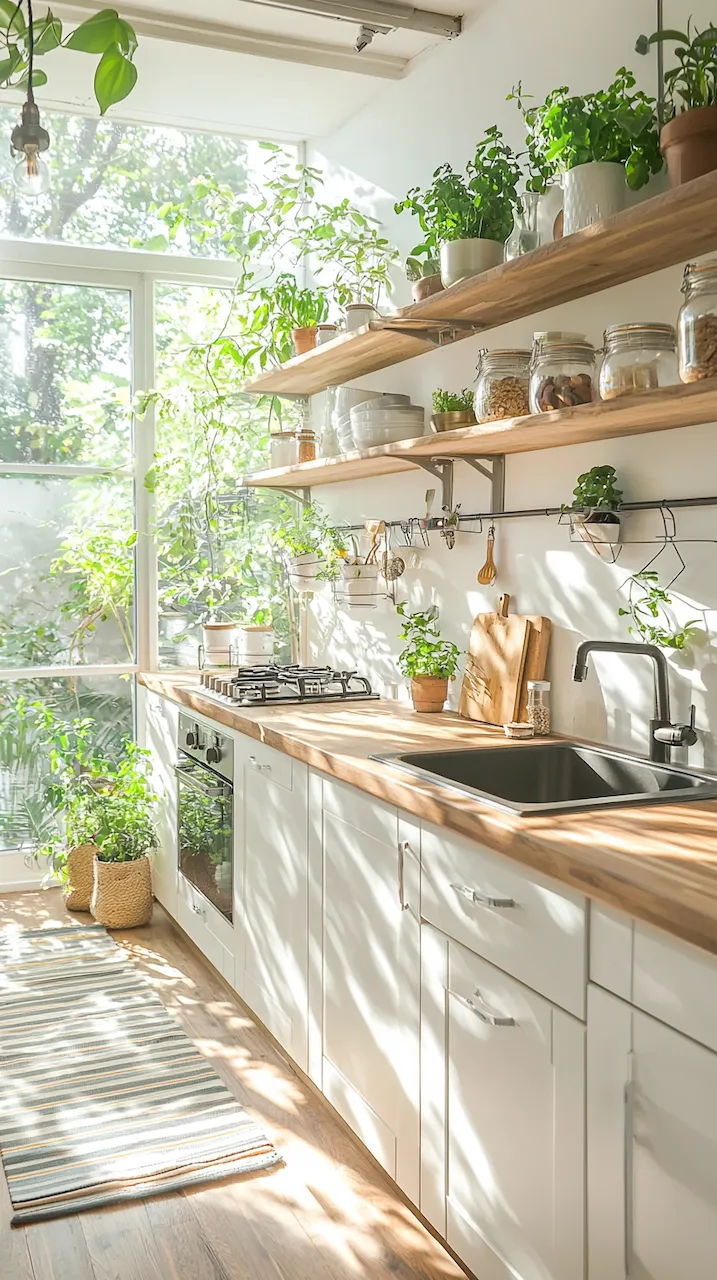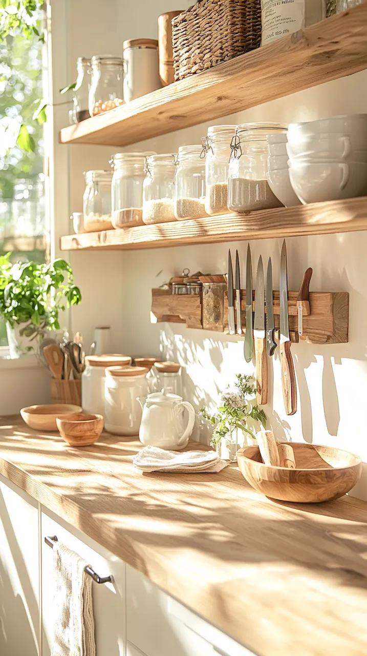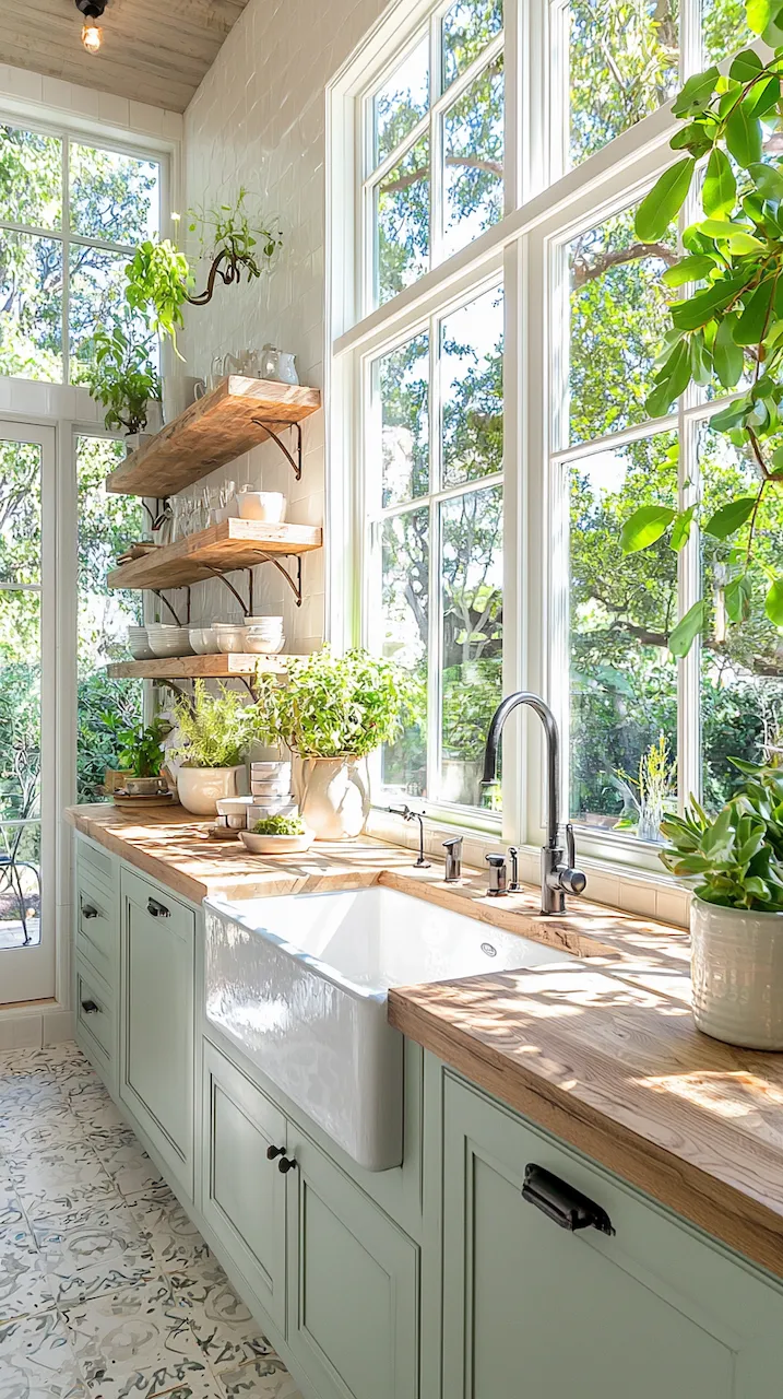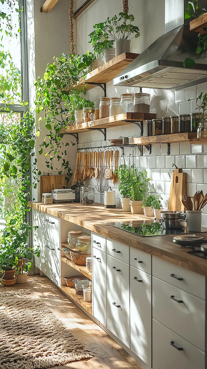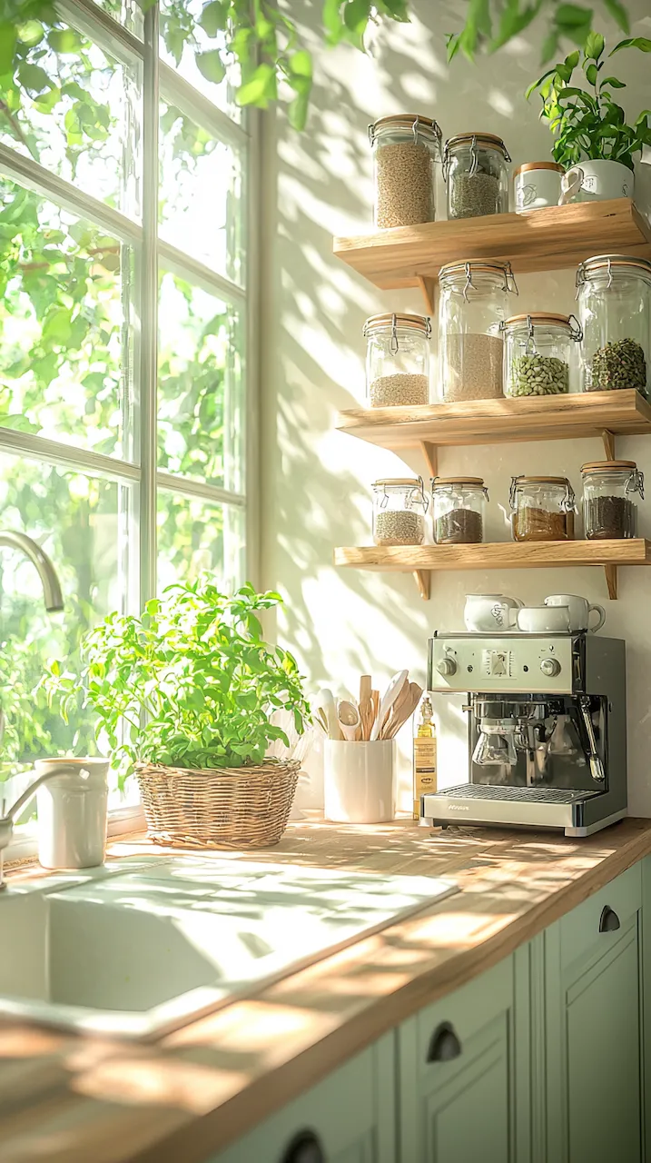 Built-in open shelving is another masterstroke where statement meets structure. A row of slim, steel-framed shelves installed above the countertop becomes a modernist sculpture as much as a practical storage solution. Whether displaying curated ceramics or a rotating cast of cookbooks and art objects, these shelves blur the boundary between utility and art. They create visual continuity with the rest of the home, especially when the kitchen opens up into a dining or living area—a common feature in cottage-style spaces.