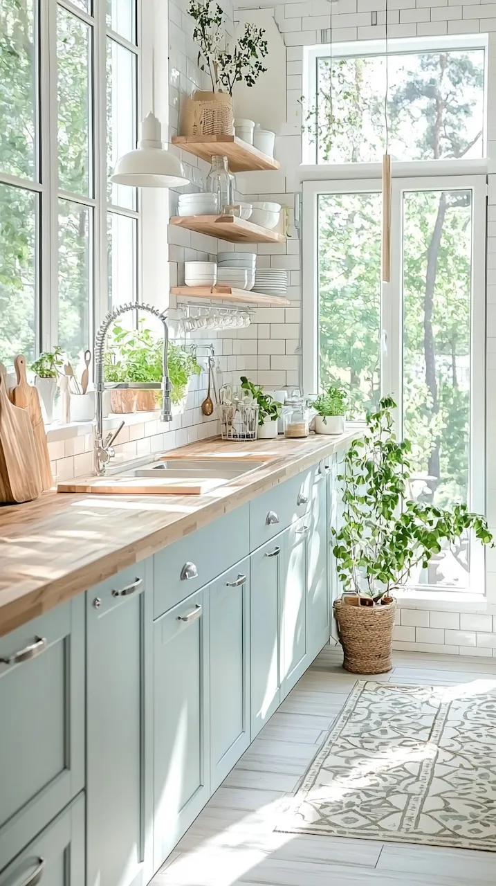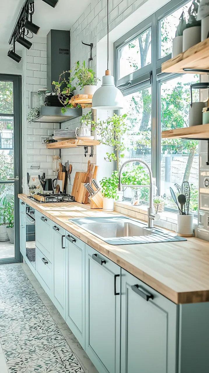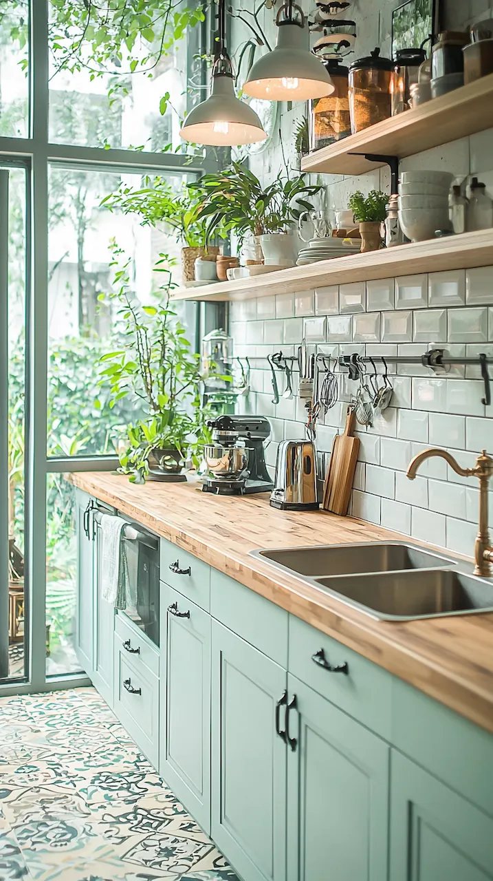 Lighting, too, plays a pivotal role. Think less about a single overhead fixture and more about layered sources: an antique pendant light sourced from a flea market, a minimalist LED strip under cabinetry, or even a brass sconce mounted asymmetrically over the sink. These are not just illuminators—they are compositional elements, building the visual structure of the kitchen itself. They cast shadows and highlights that animate surfaces, especially when the palette is rich in texture and contrast.