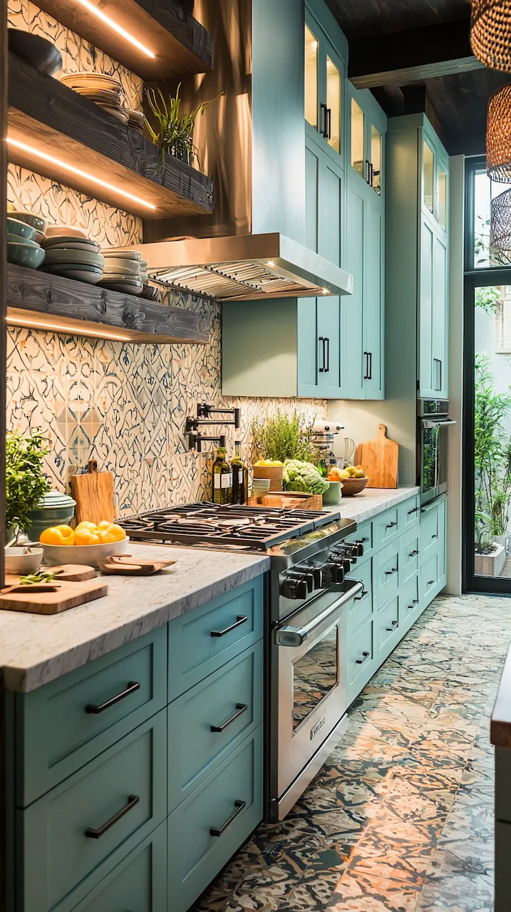 Consider DIY built-ins with personality: open shelves painted in gradient ombre hues or framed in colored grout tiles. These are the kinds of small gestures that elevate whimsy from aesthetic to philosophy. Structural whimsy also shows up in furniture choices—think of reupholstering a classic Louis XVI chair in a digitally printed camouflage fabric or suspending a bookshelf from the ceiling with brass chains.